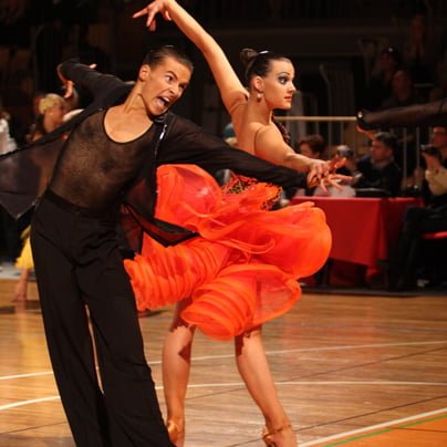 Včeraj se je v Španiji odvijalo svetovno prvenstvo v latinskoameriških plesih za pare, ki so mlajši od 21 let, in sicer drugo po vrsti. Lani na Danskem se ga slovenski pari niso udeležili, letos pa so naše barve zastopali trije. V tej očitno novi tržni niši mednarodne plesne zveze WDSF namreč ni omejitve in lahko pleše neomejeno število parov, samo plesalci ne smejo biti starejši od 21 let. Tako so na španskem parketu plesali Tim Treven in Nives Dragan, ki sta se najbolje odrezala, in sicer sta zasedla delitev 45. in 46. mesta.