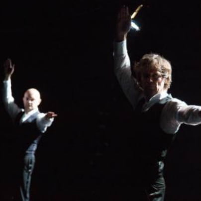 Iztokov petdesetletni sokol je eleganten v izvajanju dolgih drsnih, seveda plesnih korakov, je bolj upočasnjen, vendar kljubovalno gibčen, je sodoben in atraktiven, medtem ko ga njegov sokolji partner skuša tu in tam posnemati, skupaj pa ustvarita prijetno kompozicijo plesnega bivanja, vendar ne sobivanja, saj ostaneta vsak na svojem bregu odra, in če že menjata bregova, sta spet vsak na svoji polovici. V prvem delu steče retrospektiva plesnih segmentov, ki ogreje partnerstvo, in dve moški duši si kaj kmalu dasta duška v medsebojnem provociranju, ko odpirata teme o plesu in se izprašujeta v toliki meri, da odgovori priletijo tudi iz videoposnetkov, ki poglabljajo tematiko o plesalcu, o staranju in plesalčevi plesni aktivnosti, o možnostih umetniškega, predvsem atraktivno fizičnega izražanja z virtuoznimi strunami lastnega telesa. Tematska razglabljanja popestrita z aktivno komponento, središčem moške zasvojenosti z žogo, tudi aktivirata žonglerske prvine ter igrata in ilustrirata lastne potenciale. Domiselno s pomočjo videomanipulacij vključita v svojo sfero razmišljanj še posnetke izjav in mnenj koreografov ter plesalcev – Jonathana Burrowsa, Julyena Hamiltona, Mateje Rebolj, filozofinje Renate Seleci – in direktno odgovarjata na dobro komponiran video intervju z Nado Vodušek, ki z vprašanji vrta v proces nastajanja obstoječe predstave in v ciklus spominov pred 22 leti. … (Foto: Miha Fras)
