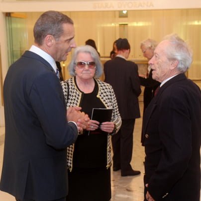 Breda Pretnar med šefom mariborskega gledališča Danilom Roškerjem (levo) in Henrikom Neubauerjem.