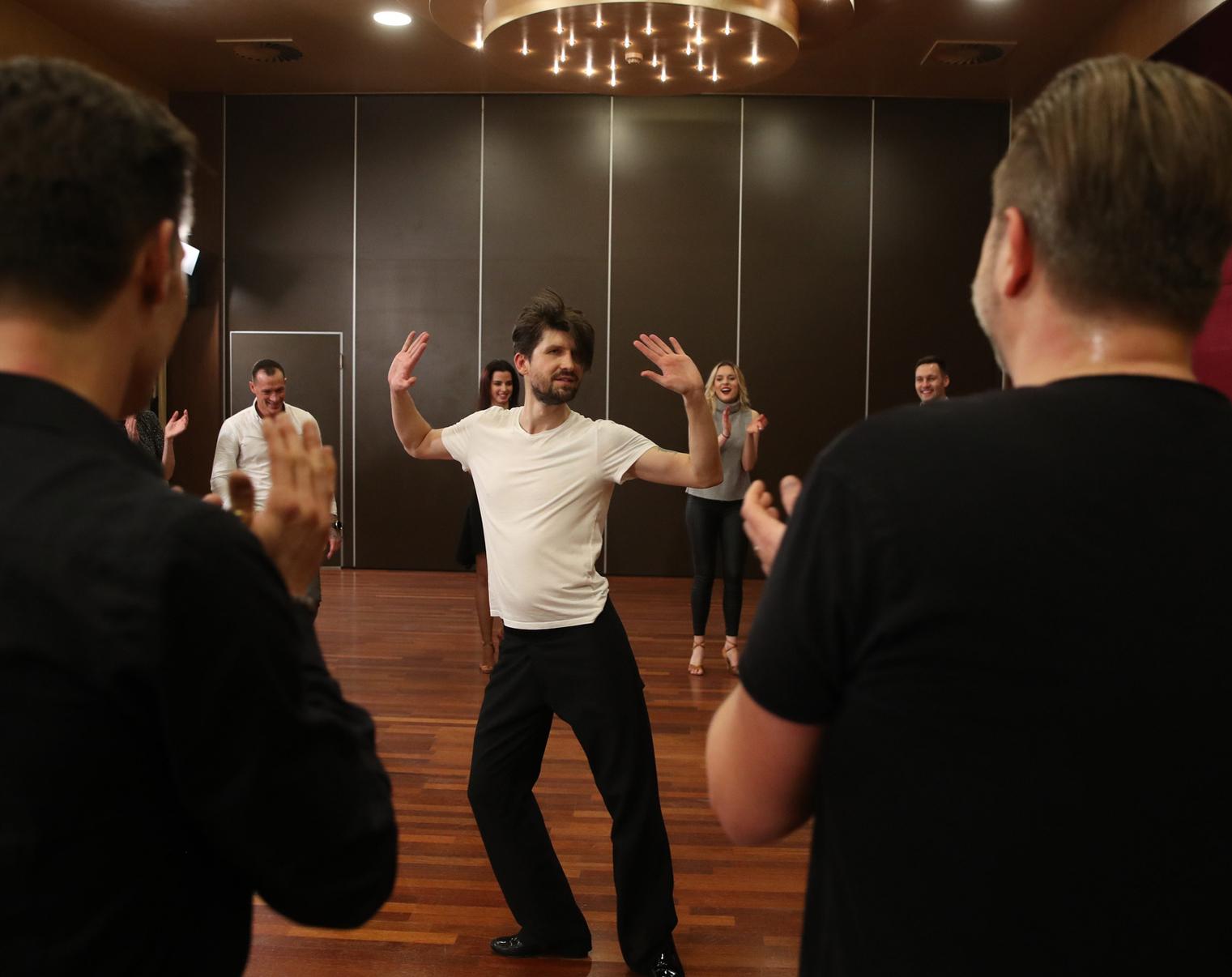 Moram priznati, da mi tudi novi plesni prijatelji pogosto omenijo, kako uživajo v mojih reakcijah, mojem entuziazmu in ljubezni do plesa. Dejansko smo se že v prvi minuti povezali in delujemo zelo uigrano. Drug drugega spodbujamo, si privoščimo le najboljše in neprestano stresamo šale. Poimenovali smo se ’razred 2020’, in naš prvi izlet na Obalo, kjer smo snemali oglasne spote za četrto sezono, je bil podoben čisto pravi šolski ekskurziji.