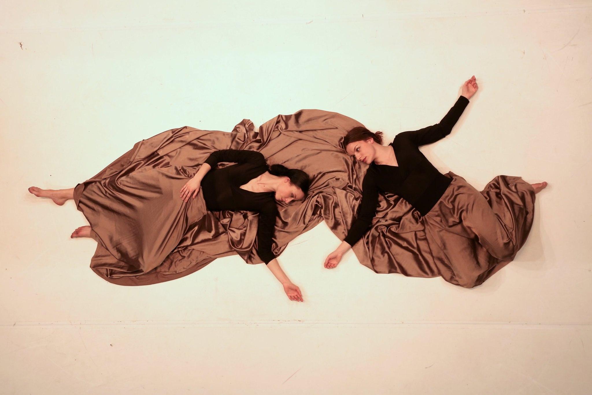 V gledališkem listu pa poetično zapišejo o njej, ženski: “Njeni koraki so skupni, njena misel je lastna neštetim in njeno krilo je polje, na katerem lahko obstaja samo skupaj z njimi. Vse dokler njenega občutka pripadnosti ne preseka slutnja individualnega in vseh njenih por ne naseli vonj svobode.” O njej v procesu igre zazveni še pesniška poetika v španščini in pisnem prevodu: “/…/ besede odidejo in ona ostane sama, govori, kliče, se prepira, šepeta, dokler je praznina ne pogoltne /…/” Gledalce ob vhodu v Kosovelovo dvorano na odru pričakajo instrumenti, tudi onidve v dolgih prepletenih krilih, zajeti v svetlobnem krogu stikoma z obrazom ob obrazu. Kar nekaj trenutkov steče, preden se začnejo rahli premiki lica ob licu, vse dokler se obraza ne razkrijeta in telesi ne vzvalovita. Onidve pa kot dve sfingi zreta v daljavo, vsaka na svojem koncu razpete tkanine, ki ju povezuje in se izvije iz njunih navideznih kril. Razideta se, čeprav so njune povezave vseskozi prisotne v umetniških plesnih oblikah, v objemu z glasbeno scensko noto, tudi znova stikoma ob sočasnem objemanju godala, ko njune dlani zaokrožijo basovski fetiš. Urška Centa je izrazita plesalka gibalne estetike, njen flamenko pa poje o močeh ženske lepote, uglašene s koraki, ritmom in eleganco plesnih rok.