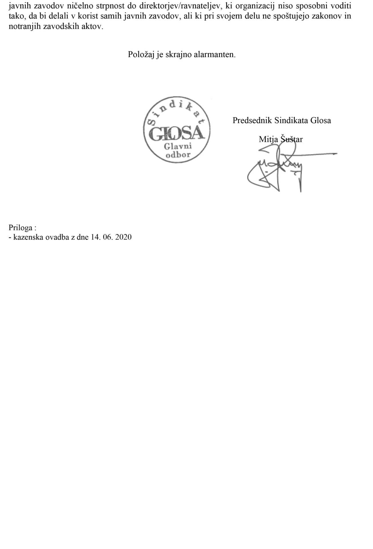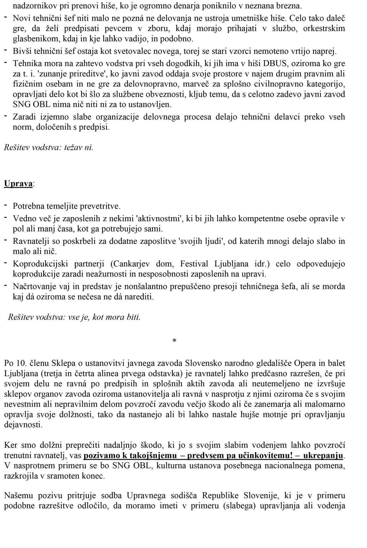 Da bodo zadeve jasne in da ne pišem ‘tračev’, sem o situaciji, kaj se dogaja znotraj hiše, vprašala Andreja Srako, podpredsednika sindikata kulturnih delavcev Glosa, sicer pozavnista v Operi, kjer deluje od leta 1997, najprej kot študent, od leta 2000 dalje pa je redno zaposlen. Zoper Ravterja in Rodeta je sindikat podal prijavo tudi na Komisijo za preprečevanje korupcije zaradi “spornega delovanja”. Dokument najdete v galeriji slik.