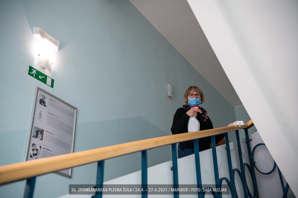 Strokovna sodelavka za ples JSKD OI Maribor Minka Veselič Kološa se je tudi pravočasno opredelila za ta novi spomladanski termin, da je lahko organizacijsko in strokovno dorekla celotni program, tudi natančno ukrepala po epidemioloških predpisih in zahtevah NIJZ, ki so botrovali novi organizaciji, kot tudi pripravi obstoječih prostorov. Že sam vhod v Karanteno je pridobil novi videz, to ni bil več samo vstopni hodnik, ampak je postal kar prirejena sprejemnica, tudi križišče, kjer so se udeleženci usmerjali v učne prostore pritličja ali pač v prvo nadstropje, dogajalo pa se od 9. do 19. ure skupaj z vmesnimi odmori. Odmori so služili za zdravo celodnevno zračenje svetlih prostorov velikih oken, tudi se temeljito zračilo in razkuževalo pred jutranjim začetkom, nato pa še ob koncu večernega programa, razkužila pa vsepovsod vidna in dostopna.