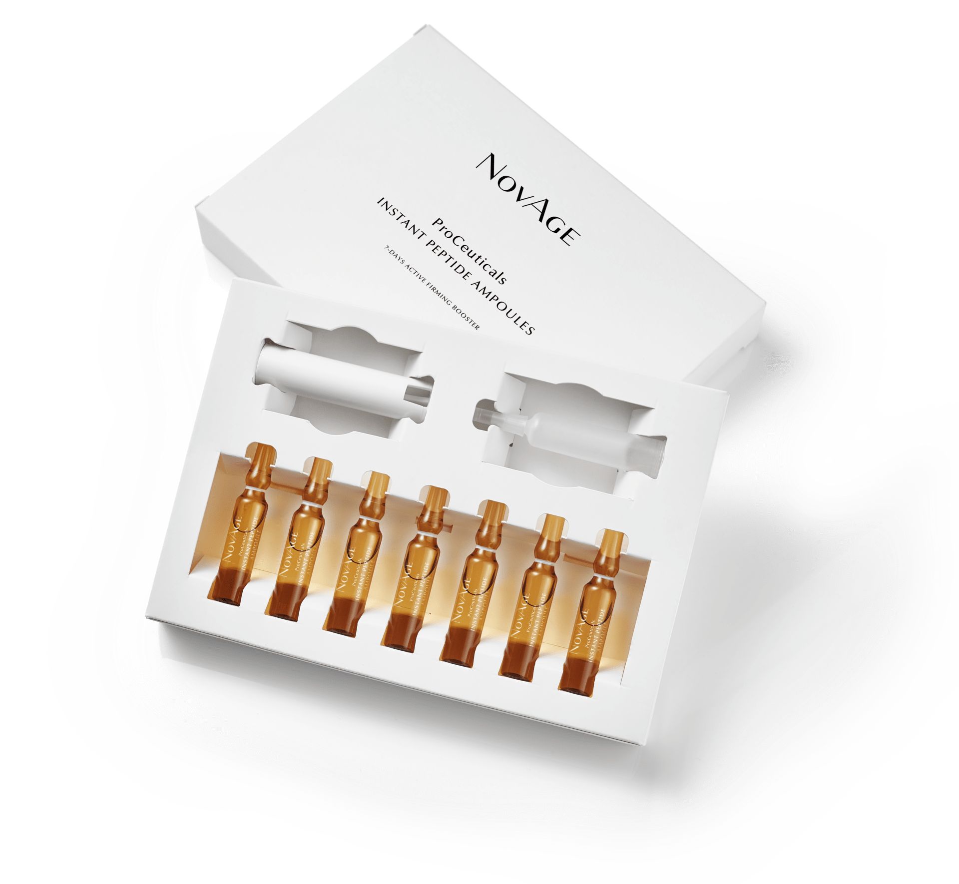 Ampule s peptidi: enotedenski intenzivni ciljno usmerjen tretma z multipeptidno raztopino, ki pomaga zmanjšati gube, tako da spodbudi tvorbo kolagena in ščiti pred njegovo razgradnjo, medtem ko učinkovina Tensor Mesh ustvari takojšen tenzorski učinek ter v trenutku privzdigne in učvrsti kožo.