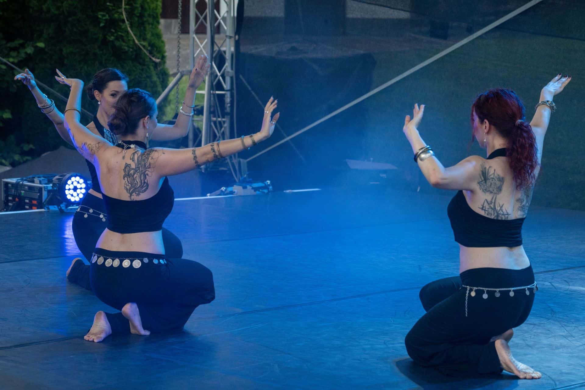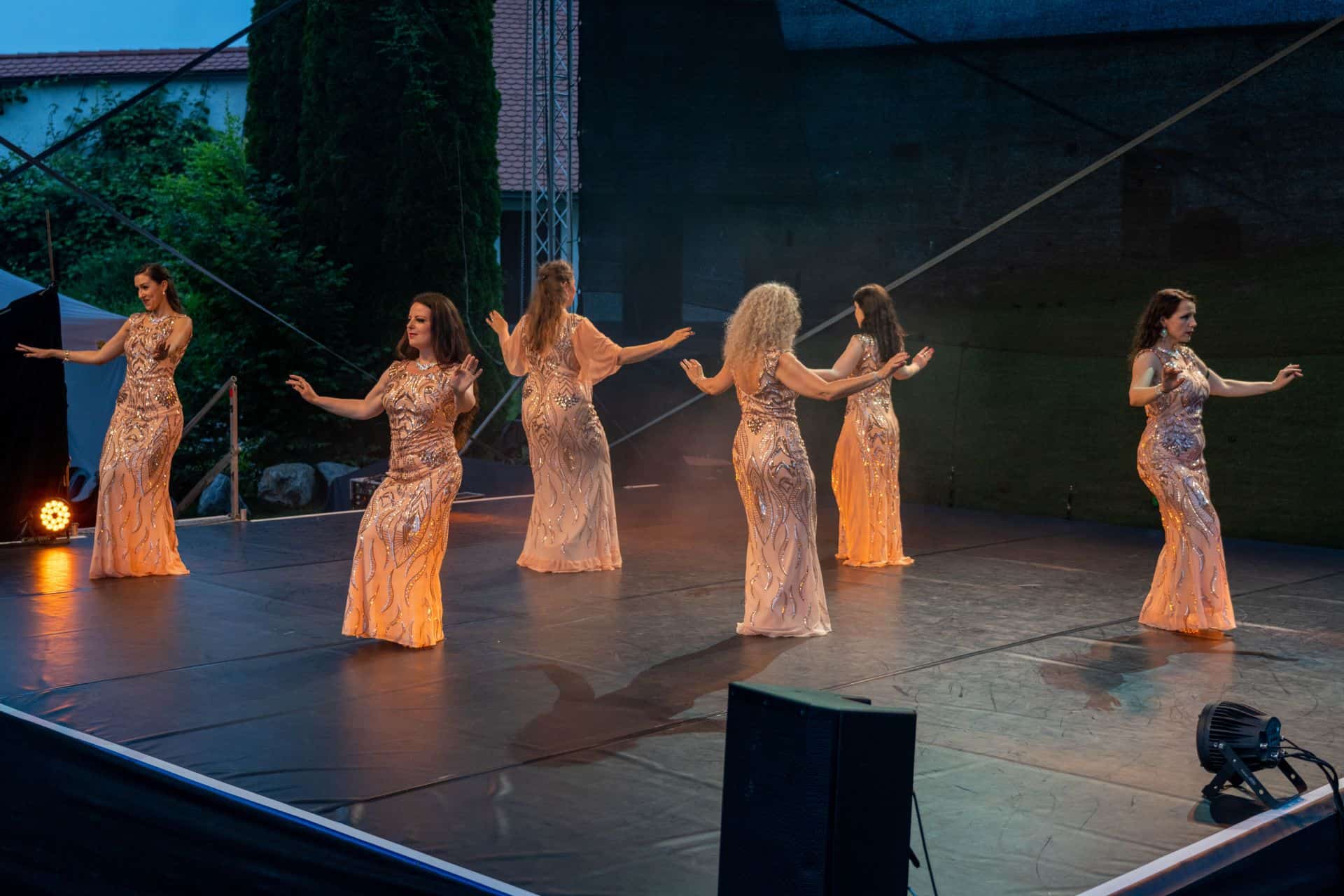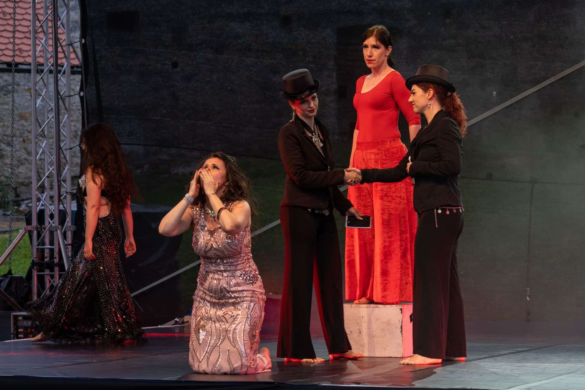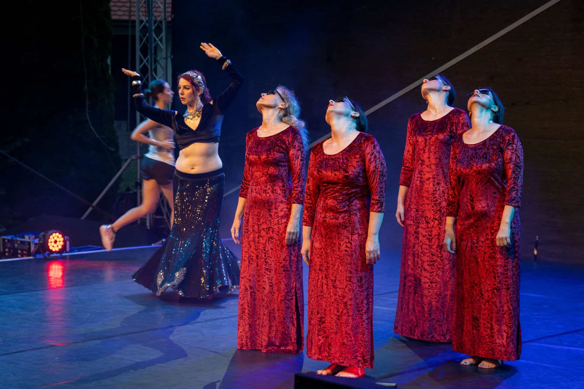 Nataši Kočar je od leta 2014 uspelo postaviti stalno skupino plesalk, njih devet, ki ji vsa ta leta sledijo, so tudi sestavi del njene uprizoritvene skupine. Tega večera jih je zaplesalo osem na odru dvorišča samostana Mekinje: Nataša Kočar, Nerlisa Osmičevič, Jana Bogdanovski, Urša Perčič, Špela Perčič, Špela Rakovec, Nilke Sekulo in Julia Tomšič. So ženske, ki se razdajajo in uživajo v plesnem svetu Orienta, kar se je začutilo tudi v uprizoritvi tega večera, ki je nastal po zamisli vodje in režiserke Nataše Kočar ter v koreografiji Nataše Kočar in Urše Perčič.