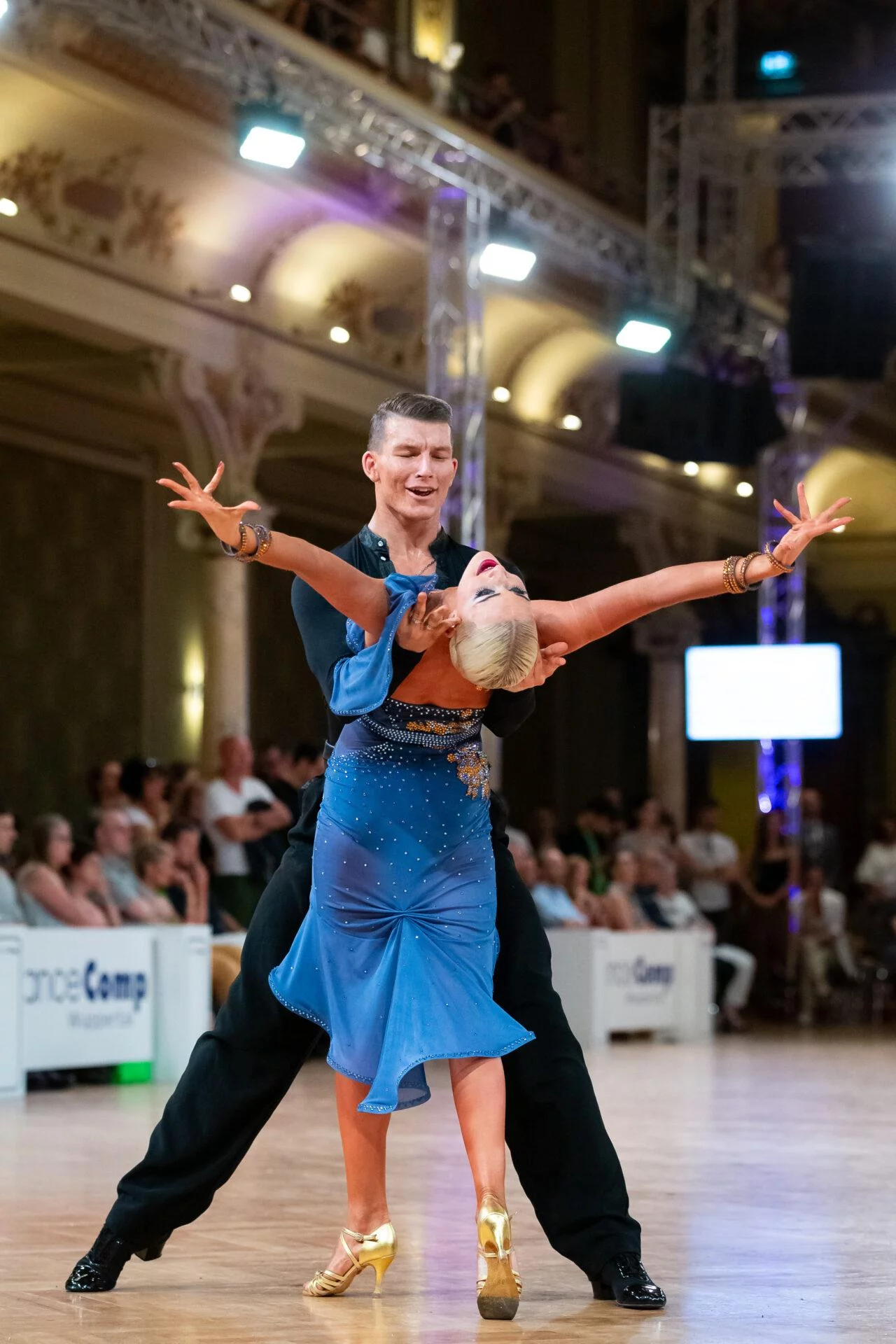 Moram bit iskrena, meni je korona na začetku dobro dela. Delala sva prek zooma iz svojega stanovanja, in tako sva imela v bistvu več časa in ni se nama bilo treba voziti. Po navadi narediva okoli 3000 kilometrov na mesec z avtom. Imela sva to srečo, da sva ‘naletela’ na nov klub, ki nama je dovolil uporabljati prostore, tako da sva vso korono v bistvu trenirala. Končno sva se lahko posvetila standardu. Latin sva za kratek čas potisnila malo na stran. Šla sva na dva kratka dopusta in se začela pripravljati na državno v desetih plesih, ki je bilo prestavljeno, ampak pred dvema tednoma žal odpovedano. Jaz osebno sem se posvetila fitnesu in kuhanju (smeh). Težko je bilo videti, kako ljudje izgubljajo motivacijo, veliko parov se je razšlo. Midva sva v tem času pridobila sodniško licenco C. Kar nama je bilo najmanj všeč, so bila nakupovanja hrane in podobnega.
