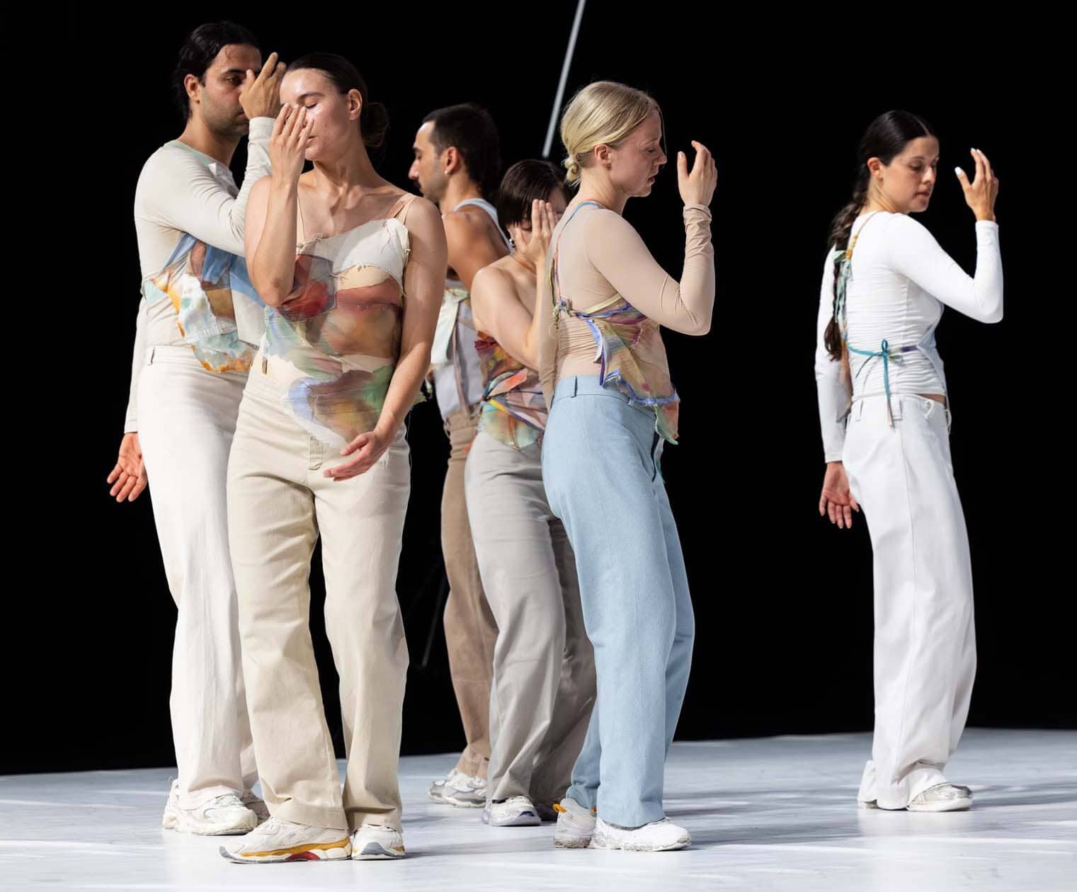 V koreografiji iranskega koreografa in avtorja Armina Hokmia je ob 20.30 na prostranem odru Stare elektrarne zaživel plesni ritual nekega drugega obdobja oziroma časa. 60 minutna plesna predstava Širaz je nastala po arhivski študiji umetniškega festivala Širaz (1966-1977), ob posvetovanju kustosa Valia Mahloujia in ustvarjalnem sodelovanju Emme Venna. Oder se je tokrat ovil z bleščečo belino (scenografija in koncept svetlobe Felipe Osorio Guzmán; oblikovanje svetlobe Vito Walter), ki se je odsevala od beline plesnega podija in so se še kostumi vsako toliko presvetlili v čisti belini (kostumi: Moriah Askenaizer; predelava kostumov: Katharina Fitz). Ko na oder tiho stopi skupina plesalcev steče plesna zgoščenka njih devet , ki v plesu in igri sila skoncentrirano potujejo po odrski belini, upočasnjenih skoraj nevidnih lebdečih korakov: Daniel Sarr, Luisa Fernanda Alfonso, Aleksandra Petrushevska, Efthimios Moschopoulos, Johana Ryynänen, Emma Venna, Charlot Madeleine, Utzig Xenia. Njih drža je vzvišena, ponosna, premiki pa nepredvidljivi, kot bi jih usmerjala gibljiva plošča programiranih vzvodov; saj nenehno spreminjajo smeri hoda, se premikajo po linearnih smernicah iz kota, ob strani, poševno ali vodoravno ter po sredini, v manjših skupinah, duetih in tudi v razširjeni skupini. Prefinjeni gibi, vzgibi ter geste so slikovito strukturirani, prav gotovo v dimenzijah nekih drugih (brezčasnih) časov.