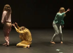 In kaj je tako posebnega v predstavi Personal Symphonic Moment Eline Pirinen? Že sama postavitev glasbe na oder ali avtoričin odnos do simfonije izpostavi novo obliko scensko glasbene dramatizacije. Simfonično delo se ne posluša kot koncert in ni zvočna kulisa, ki sledi gledališki ali plesni sceni. V tej predstavi postane simfonija ključni del scenske strukture, ko glasba vijug, rezkih tonov, sekanja, bobnenja ritma, udarcev in revolucionarnih višajev začne gnesti telesnost. Tako se je tudi začelo, in to v popolni temi, ko so zadoneli zvoki in se ni nič videlo. Potem pa oči v temi počasi spregledajo in naenkrat postanejo vidni svetlejši obrisi monumentalnih stebrov ob straneh gledališča (ki vedno znova opozorijo, da je prva namembnost gledališča Odeon bila borza), z njimi pa tudi obris odra. Stanje te pol slepote traja kar nekaj časa, donečo glasbo pa se doživlja kot oprijemljivi zvočni performans; zanimivo, da se v tem trenutku ničesar ne pogreša, le občutki v notranjosti brbotajo, kot bi hiteli zapustiti telo, poleteti … Naslednja scena se začne ob rahli luči barvitih žarnic, ko se po zraku ob zadnji steni odra širijo meglice (megleni dim pa ne prši v gledišče in ne duši, kot smo žal pri nas vajeni), ko pa se toni glasbe zgostijo in dobesedno začnejo tlačiti, se tudi meglice zgoščajo v neprosojno sivo gmoto in spuščajo na tla. Skozi sivino pa se počasi prebijajo tri ženske silhuete, odete v prosojne bluze in dolge hlače pastelnih barv, so bose in kot trije kipi s pogledom usmerjenim navzgor ter rokami na hrbtišču obstojijo na sredi odra, postavljene na podstavku stopal in prav tretji poziciji, kot bi poslušale glasbo. Na koncu tudi v enaki drži zapustijo oder, ko je glasba že utihnila in se za njimi počasi ugaša luč. Ko pa glasba začne z novim stavkom ubirati nove tonovske poti, ženske spreminjajo svojo podobo in jim lasje zakrijejo obraze. Od tu dalje je Elina slikarka lastnega gibalnega stila, ki ga navdihuje energija simfonije, ko črta nove skokovite in voluminozne oblike, gibalne pospeške ter strukture. To so leteči skoki in so gibi, ki zavibrirajo kot strune godal, ali se telo v višavah boči po vijugah violinskega loka in se lahkotno dviga ob dihu pihal, tako ples postane odmevna ilustracija simfonične moči in ritma. Ples tudi ni sam sebi namen, je izliv vznemirljivih nagonov, ki se kopičijo ob tonih glasbe in pršijo po odru. Radikalno in silovito zareže avtorica v naš neobrzdani čas, ob tem pa žensko telesno lepoto in osebnostno milino razgali brez zadržkov, delno tudi v stilu moških režiserskih prijemov iz časa 70-tih, ko na odru ni manjkalo (in še ne manjka) atrakcij golote in telesnih izločkov. Verjetno je "frapiralo" prav to, da je na sceni in v ospredju ravno žensko slo, ko tri "furije" preletavajo oder, se med seboj borijo in celo podležejo sado-mazo nagonom. Vročica zavrete krvi se nato hladi v banji, prepolni ledenih kock najprej z glavo potopljeno v ledeni hlad, potem se potopi še telo in se one ohlaja celo v iztegnjeni ženski špagi … Ko se kri umiri, in to sočasno z bolj umirjenim poigravanjem glasbenih ritmov po novih nevidnih poljanah, takrat obrazi postanejo vidni in ženske spregovorijo, tudi pojejo, zasliši se zven besede feminizem, beleži tudi čas, melodični sopran pa še lirično izvije stavek in izpoje misel, da je tako glasbo lahko komponiral le skladatelj v komunističnem Leningradu, kakšna pa bi bila glasba Šostakoviča, če bi živel v tem mestu … Tik pred koncem pa izza zavese na oder vstopi še mali otroški zborček s svojo voditeljico, ki v spevnosti otroške pesmice zasije kot novi žarek …