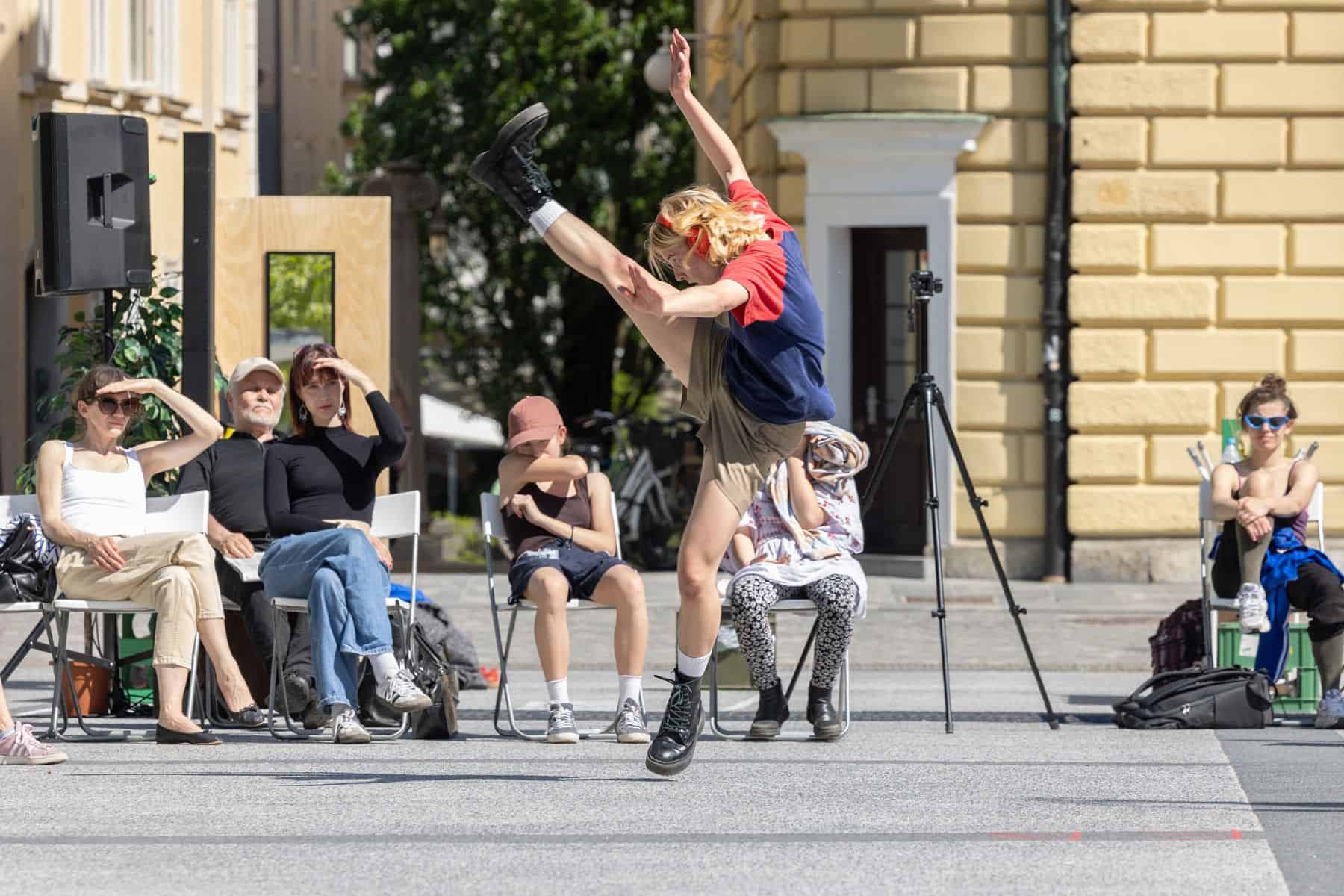 To bomo pa videli v četrtek, 29. 8. med 17.00 in 19.00 na Glavnem trgu pri fontani, ko se bo zgodil projekt 20 METROV V DOLŽINO, DEVET METROV V ŠIRINO IN ŠTIRI METRE V VIŠINO, gostovanje plesnega paviljona v Mariboru v sodelovanju z Društvom za sodobni ples Slovenije. Takrat bodo nastopili gostje iz Ljubljane, Celja, Kranja in plesalci Centra plesa, Plesne izbe Maribor in Galerije plesa Maribor.