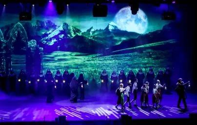 Tri ure in pol trajajoči spektakel, predstava, sestavljena iz dveh dejanj, se je začela s ‘tihim’ prizorom, ki je dogajanje v muzikalu umestil v nunsko opatijo. Tihi prizor, ki je bil morda malce predolg, bi bil učinkovit, če bi bil ta uprizorjen v (gledališki) dvorani, ki bi narekovala bolj poslušno občinstvo, pa vendar …