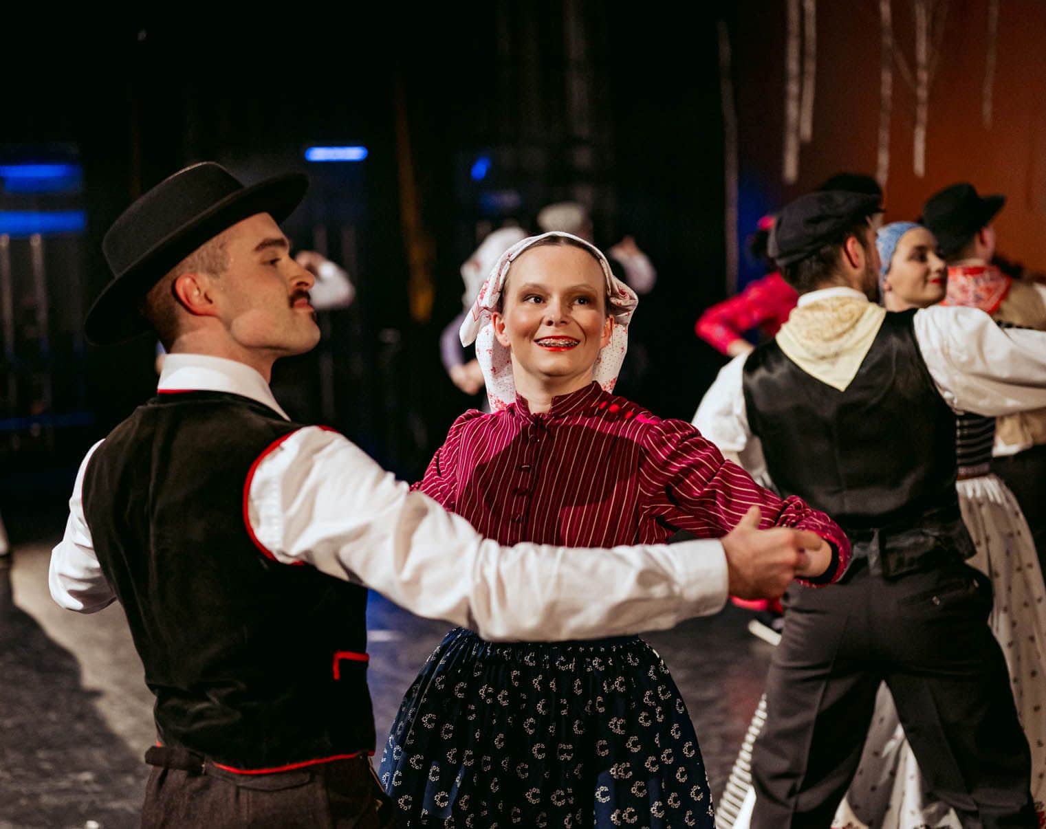V drugi točki programa Štefanov ples, je množica parov po odru zavela ekspresijo narodnega in plesnega veselja. Pari so se vili v raznolikih krožnih oblikah, vijugali po odru, se cepili v manjše krožne oblike, koraki so poskakovali, se zavrteli, oni pa žareli v energiji gibanja in veselja; tako radostno kot nekoč, ko je svetloba znova premagala zimsko temo. Tudi vzdušje v dvorani so docela povzdignili, ko se je spontano sprožil zasluženi aplavz; avtor koreografije dr. Tomaž Simetinger; avtor glasbene priredbe: Žan Kajzar po Petru Vendraminu.