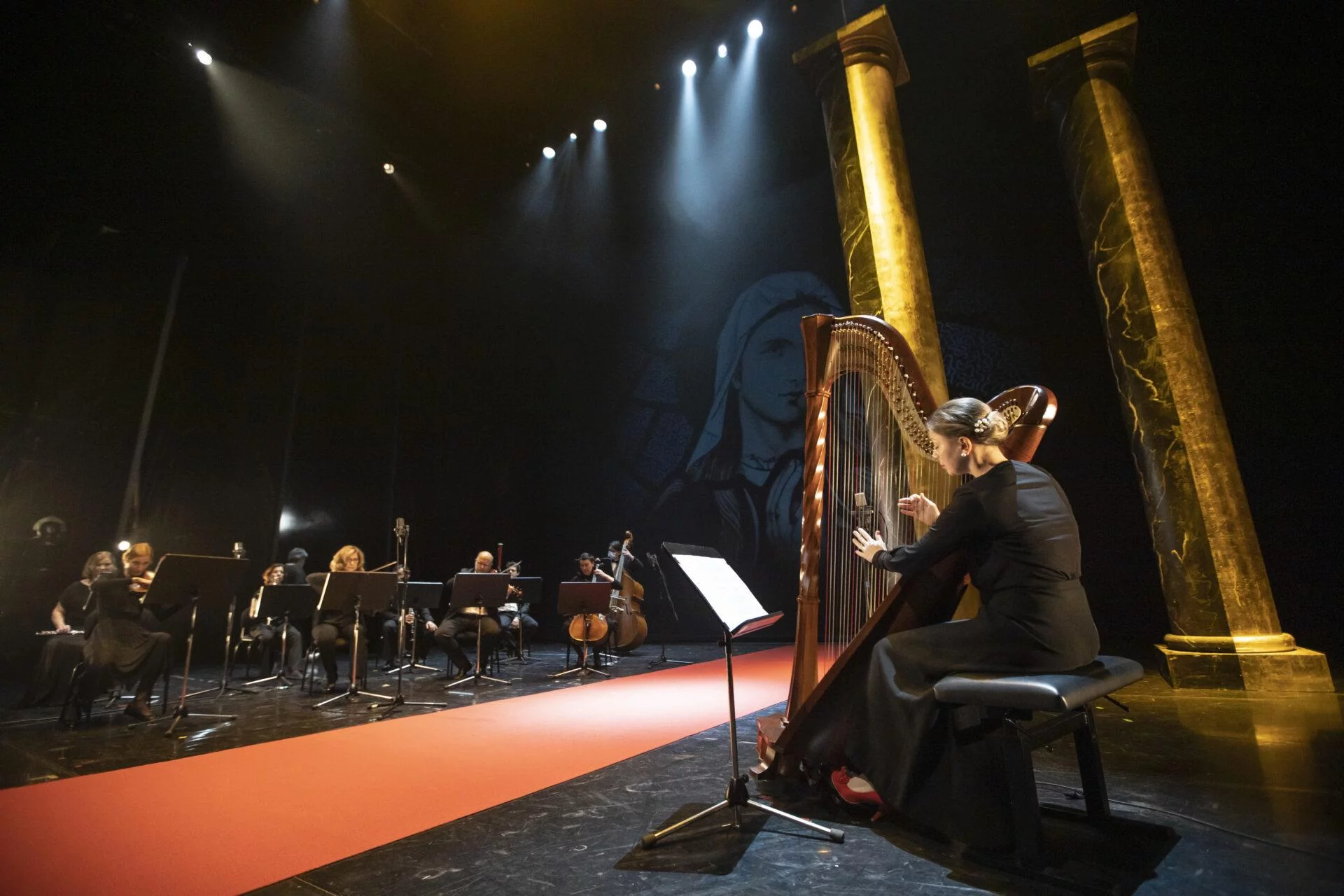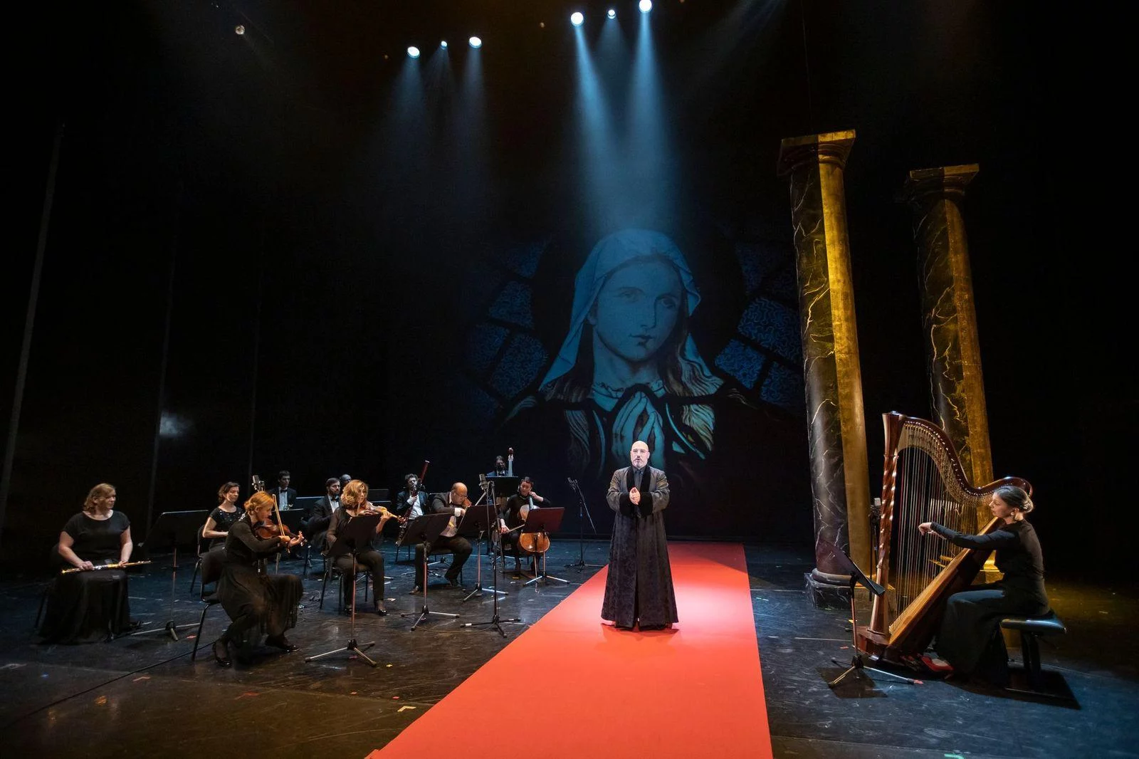 Prijetno scensko oblikovan je bil tudi spevni izhod baritonista Jožeta Vidica, ki povsem prepriča v svoji interpretaciji molitve Ave Maria Williama Gomeza, postavljeni na sredi scene med harfistko Mario Gamboz Gradišnik ter komornim orkestrom v sestavi: Vesna Velušček, Dragana Pajanović (violina), Marin Žužek Kres (viola), Barbara Gradišek (violončelo), Aleksandar Blagojević (kontrabas), Špela Benčina (flavta), Manca Marinko (oboa), Jakob Bobek (klarinet), Árpád Balázs-Piri (fagot), Primož Zemljak, Erik Košak (rog). Ko tudi scenska postavitev doda k živosti glasbene komunikacije med opernim solistom, harfistko in komornim ansamblom.