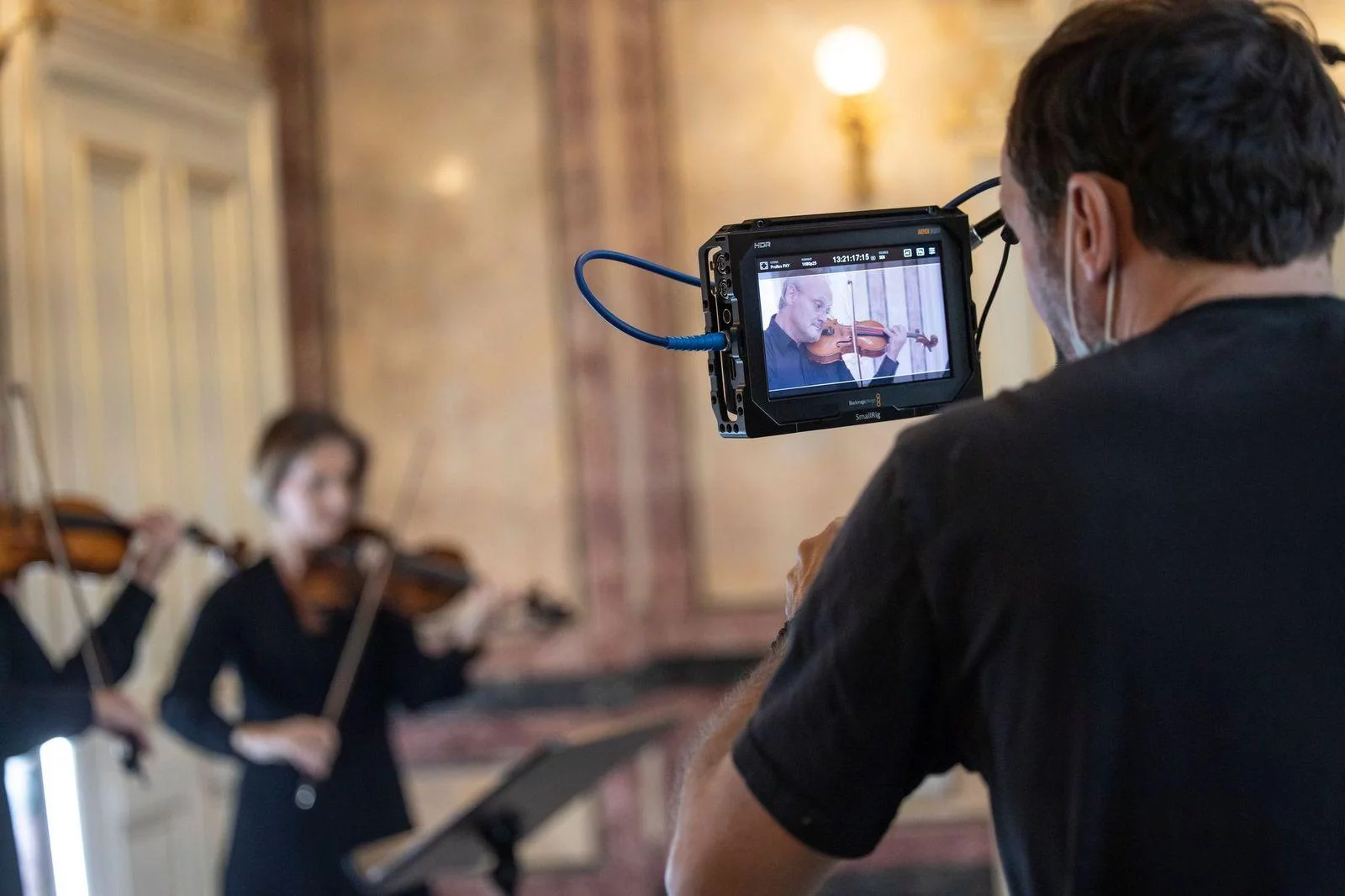 Lirični duet violin, Igor Graselli, Rahela Grasselli, se simpatično umesti in uglasi v enem od hodnikov ljubljanske Opere ob muziciranju skladbe ruskega skladatelja Reinholda Morisevića Glièrea: Duet v G-molu, medtem ko so vse ostale miniature postavljene na velikem odru, ko ozadje scene krasi romantična poslikava zidnih štukatur. V nekem trenutku je na posnetku bil zaznan še kanček zrcalnega odseva nastopajočih v ogledalu, žal pa se zanimiv scenski utrinek ni razdelal, ampak takoj izginil; škoda. Tudi operni solisti so s svojimi izbranimi arijami umetniško popestrili glasbeno sceno. Basist Sašo Čano je izbral arijo Se il cor guerriero iz opere Tito Manilo italijanskega skladatelja, violinista in dirigenta Antonia Vivaldija. Opere so vezane na odrsko sceno, in je arija toplo izzvenela v basovski izvedbi solista Čana, postavljena v scenski milje domnevne sobe z vrati, ki se jim solist približuje in odide ob glasbeni spremljavi godalnega kvarteta: Vesna Velušček, Dragana Pajanović (violini), Evgenij Meleščenko (viola), Aleksandra Čano Muharemović (violončelo).