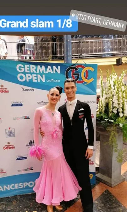 Poleg Uroša in Dedee sem v Stuttgartu videla le še tri (!) slovenske pare, in sicer Akima Pekunova z Mašo Kastelic, Iliyo Dobreva z Ano Mesec ter Andreja Marolta z Nino Vrhovnik. Ana in Iliya sta se uvrstila na odlično 43. mesto na Grand Slamu v standardnih plesih, za kar jima od srca čestitam!"