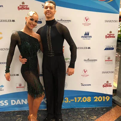 Kratek čas je bila v Liederhalle tudi plesna sodnica in trenerka Daniela Škofic Novak ter za naš portal zapisala nekaj vtisov: "Pravkar sem se vrnila z Odprtega prvenstva Nemčije (German Open Championships ali kratko GOC) v standardnih in latinskoameriških plesih, ki vedno poteka sredi avgusta v Stuttgartu. Tam sem bila v vlogi trenerke in spremljevalke plesnega para Uroš Lazič in Dedee Koželj, ki od letošnjega januarja tekmujeta v članski konkurenci v vseh treh tekmovalnih disciplinah: standardni plesi, latinskoameriški plesi ter kombinacija desetih plesov. Kljub njuni mladosti in dejstvu, da je GOC eno najmočnejših in številčno največjih tekmovanj v sistemu WDSF, smo se odločili, da priprave na sezono 2019/2020 namesto s simulacijskimi preplesavanji začinimo kar s konkretnimi nastopi na tekmovalnem parketu. Naš cilj je bil pridobivanje novih tekmovalnih izkušenj in testiranje trenutne forme. Dedee in Uroš sta se udeležila dveh tekmovanj v standardnih plesih (Adult Rising Star Standard in Under 21 Standard) ter treh v latinskoameriških plesih (Under 21 Latin, Adult A Latin ter Grand Slam Latin). Ker tekmovanja potekajo v treh različnih dvoranah istočasno, je bil izbor omejen, saj so se nekateri dogodki časovno prekrivali. Z rezultati se nismo obremenjevali, zaradi že prej omenjenih konkretnih ciljev. Vsakodnevna tekmovanja pa so kljub temu prispevala k temu, da sta bila oba plesalca iz dneva v dan bolj sproščena in sta nadgrajevala svoje nastope iz runde v rundo ter od plesa do plesa. Tako se je zgodilo, da sta proti vsem pričakovanjem zadnji dan tekmovanj končala z izjemno uvrstitvijo na odlično 16. mesto v konkurenci 140 odraslih parov v Adult A Latin razredu. Za las sta zgrešila celo polfinale, v katerega se je uvrstilo 15 plesnih parov. Kot zanimivost naj povem, da je bila okoli ena tretjina vseh parov iz Azije, večinoma s Kitajske, pa tudi Tajske, iz Vietnama, Hong Konga, Macaua, Južne Koreje ter Japonske, in vse kaže na to, da bodo ti pari v bližnji prihodnosti postali v svetovnem merilu najmočnejša konkurenca.