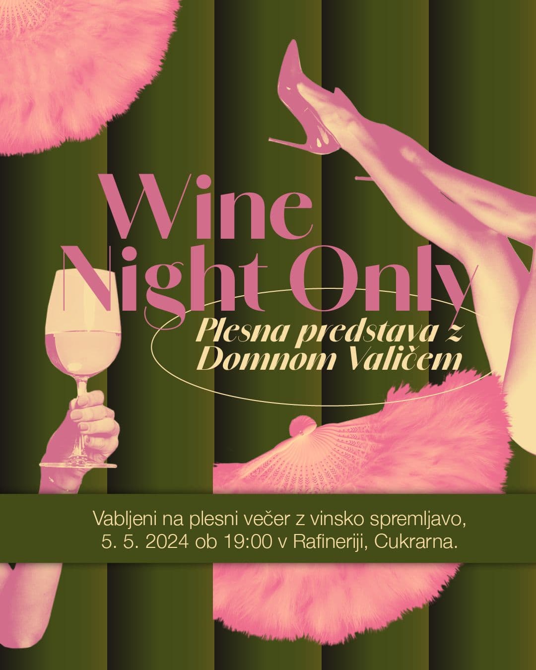 Plesalka, pedagoginja, koreografinja Tjaša Žibert bo v nedeljo, 5. maja uprizorila predstavo Wine Night Only s katero bo praznovala svoj 33. rojstni dan v Cukrarni v Ljubljani. Ob njej še Domen Valič in četica plesalcev.