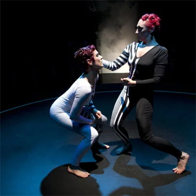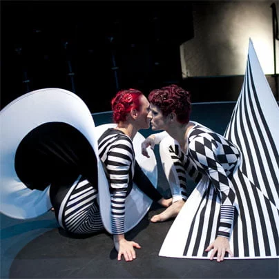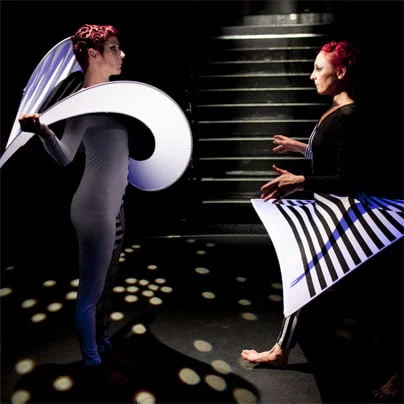Njun ples je ples prelivanja likovnih gibalnih oblik, ki jih še posebej poudarjata plesna kostuma potiskana s črtastimi, krožnimi in pravokotnimi linijami v stilu poparta (kostumografija in kreacija maske: One Fiction Fctory / Metka Megušar Bizjan, Irena Tozon Mrhar, kostumska izvedba iz lycre: Marija Pogačnik). Kostumske oblike in kreacije domiselnih dodatkov s pravokotno oblikovano lycro utrjeno na robovih s kovinsko žico se pred gledalca razprostirajo kot iluzije oblačilne mondenosti, ki bi se jih marsikatera tudi željno oprijela. Predstava je do potankosti likovno zarisana, vključno z oblikovanjem luči (Sanja Valič, Danilo Pečar, Ton-ka: Jasmina Bernja). Noto estetskega niansiranja pa še posebej barvajo in poglabljajo plesna zlitja dueta, ko se njuna perfekcija gibalnih linij zazdi v trenutkih statične zamrznitve, kot da bi jih izklesal kipar, sam mojster Rodin. Uršula Teržan je v tem njunem zlitju dualnosti bolj zadržana, hladna, medtem ko je Tanja Skok mladostno zvedava in topla, kar njunemu plesnemu duhu prijateljevanja doda simpatično začinjenost.