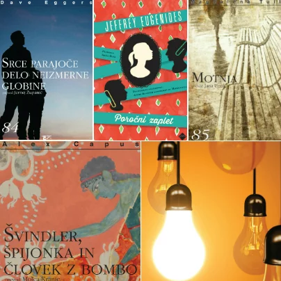 Pri Cankarjevi založbi je izšlo pet novih knjig, ki so jih predstavili v petek, 15. maja, v knjigarni Konzorcij. V zbirki Moderni klasiki so izšla naslednja književna dela: Srce parajoče delo neizmerne globine, Dave Eggers (prevod Jernej Županič); Motnja, Magdalena Tulli, (prevod Jana Unuk); Švindler, špijon in človek z bombo, Alex Capus, (prevod Mojca Kranjc, spremna beseda Špela Virant); izven zbirke pa: Trikrat ob zori, Alessandro Baricco,(prevod Janko Petrovec); Poročni zaplet, Jeffrey Eugenides, (prevod Irena Duša).