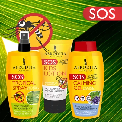 Če se piku insekta niste mogli izogniti, vam Kozmetika Afrodita priporoča SOS CALMING GEL (120 ml – 4,30 eur), ki je prava hladilna terapija za blaženje srbečice. Z aloe vero in lavando blagodejno pohladi, pomiri in regenerira razdraženo kožo takoj po piku insekta, nepogrešljiv pa je tudi pri sončnih opeklinah ter ožigih meduz. Na voljo v maloprodaji ter v spletni trgovini na: webshop.afroditacosmetics.com