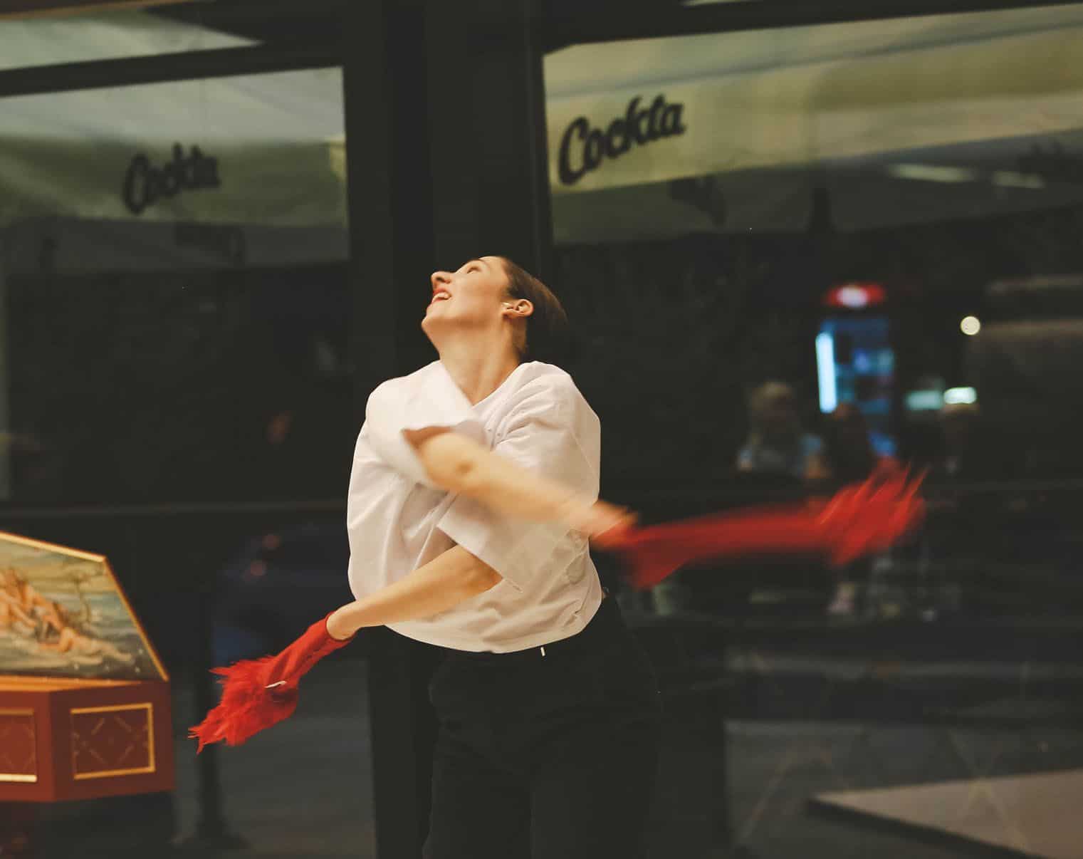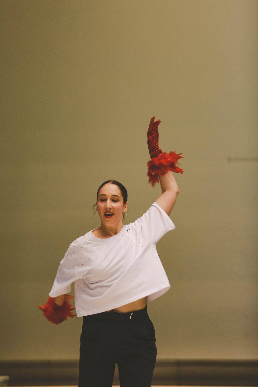 Skozi večletno raziskavo se Anja ukvarja z oblikovanjem podobe, ki sledi razvoju odrskega jezika – razstavljanju zvočno-gibalne flamenko forme, prepajanju s somatiko in hkrati ohranjanjem tega, ‘kdor jaz pravzaprav sem’. Pri raziskavi gibalnega jezika sodeluje s koreografinjo Snježano Premuš in snovanjem kostuma z Nino Čehovin. Kaj od flamenko forme ostaja in kako se pojavlja? Gre za neke vrste ločitev od podobe, a ta nekako še vedno nekje obstane. Kot nekakšen ‘solo z objekti, ki so od podob ostali’. Tako si prizadevamo zgraditi sitem, ki nam najprej sicer služi, potem nas postopoma razčloveči, nato nepotrebno (nas) izvrže, mogoče na koncu celo sam po sebi deluje brez nas. So to moje Goldberg variacije? Sistem – partitura, ki mi omogoči, da za trenutek pozabim kdo sem, in lahko v miru zaspim.