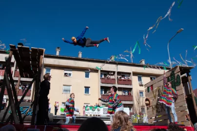 V akrobatskem šovu Dunking Devils prikažejo zgodbo, kako Donald Trump zgradi zid na ameriško-mehiški meji, Mehičani pa pod njega postavijo trampoline in ga tako poskušajo preplezati. Trump in njegovi agenti jih pri tem bolj ali manj (ne)uspešno ovirajo. Šov je dobil veliko pozornosti tako na sami prireditvi v Cerknici kot tudi na spletu. …