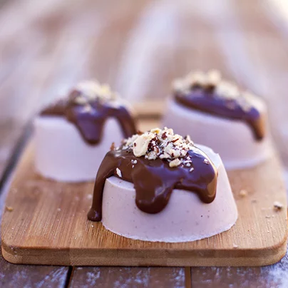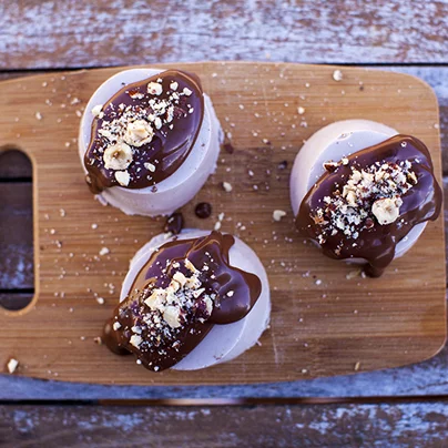 Tokrat sem za vas ustvarila skoraj presno lešnikovo panna cotto s čokoladnim ganache prelivom. Recept je lahko spremenjen čisto po vašem okusu, običajno mleko lahko zamenja za kokosovo, s tem boste dobili tradicionalno belo panna cotto. Preliv pa lahko zamenjate tudi z marmelado. Recept na www.teresamisu.com