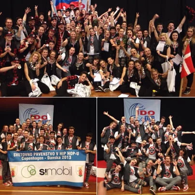 Plesalci v modernih tekmovalnih plesih bodo do konca leta zaposleni z udeležbami na evropskih in svetovnih prvenstvih. Med 16. in 20. oktobrom so se zbrali na Danskem, in sicer v Kopenhagnu, kjer se je odvijalo svetovno prvenstvo v hip hopu, break danceu in electric boogieju za leto 2013. Vesna Vučajnk iz Plesne zveze Slovenije je poslala naslednjo izjavo, na uradne fotografije še čakamo. Ker novice brez fotografij na našem portalu ne moremo objaviti, smo jih za "prvo silo" pobrali s socialnega omrežja FB. "Slovenski plesalci so se ponovno povzpeli na svetovni vrh tako v hip hopu kot breaku, v electric boogiju pa se le-temu zelo približali. Domov so se vrnili s 5 naslovi prvakov, 5 srebrnimi in 5 bronastimi medaljami. Vse tri članske hip hop formacije so se uvrstile v finale SP. Formacija Kill ’em with the beat (PŠD Artifeks) je zmagala, 3. mesto je osvojila Flip that (ŠKPDPS Novo mesto), 4. mesto pa Kalejdoskop (D Kazina). Dvojne stopničke so si priplesale tudi članske hip hop male skupine, kjer je naslov svetovnih prvakov osvojila skupina RTFX Crew (PŠD Artifeks), 3. mesto pa PSNM (ŠKDPS Novo mesto).