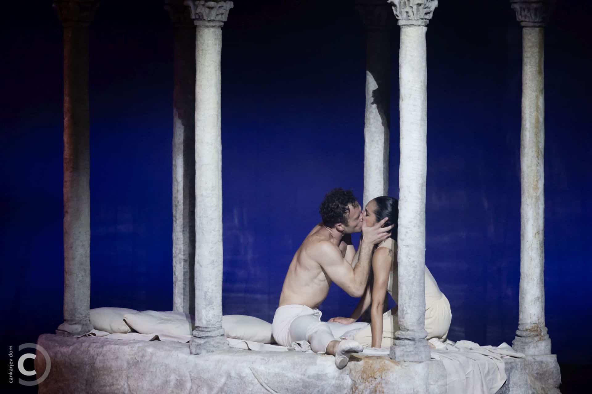 Koreografski jezik Bubeníčka je poetično navdahnjen ob srečanju mladega para, dveh sprtih grofovskih družin, Romea Montegi – Michele Pastorini in Julije Capuleti- Maria Matarranz de las Heras. V Julijini sobi je to božanski spoj dveh duš in dveh teles, ki se ne moreta in ne moreta odtrgati eden od drugega. Nasproti in v kontrast ljubezni kar vihrajo moči nerazumnega sovraštva ter bojev mladih Capuletovih, zlasti Tibalda – Noa Gabriel Siluvangi, Julijinega bratranca. Takrat plesno fluidnost zamenjajo ostrine izvrstno insceniranih bojev, žal tudi morbidnih umorov ter pristranskih odločitev oblasti, ki kar botrujejo umoru ljubezni, oziroma vladavini kaosa ter nasilja; ko v smislu dramske zgodbe tudi koreograf Jiří Bubeniček skuša osvetliti problematiko vzgoje ter dejanja oblasti, ob pogledu na današnji čas.