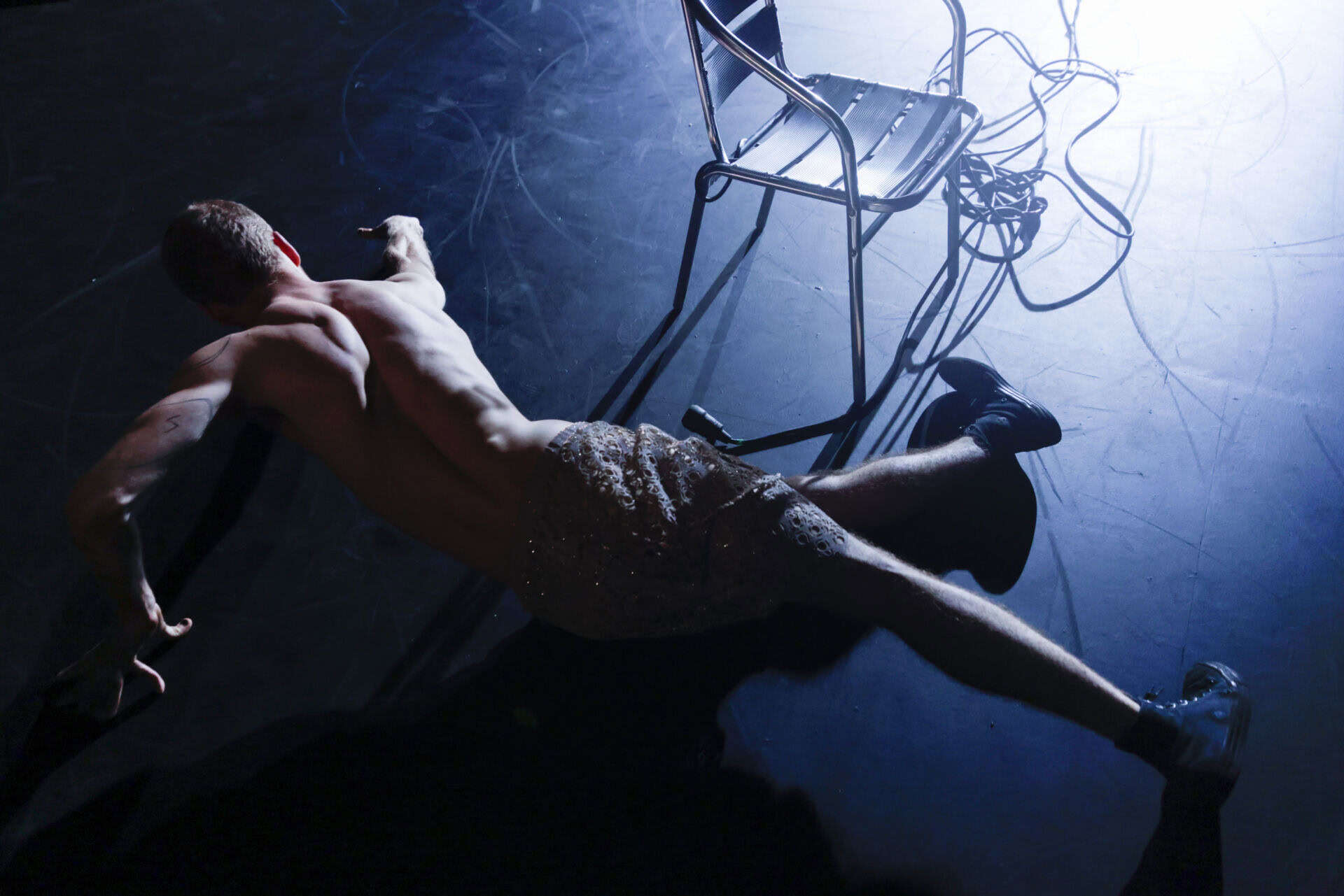 V začetku predstave fascinira Lukov popolni nadzor telesa, ki že napoveduje svoj prehod v nepričakovano. Zaveda se nenehne grožnje spremembe, nepredvidljivega giba, trzljaja, ki preti na vse. Razumemo ga lahko v kontekstu družbe, kot sistem na robu kaosa, ki porablja veliko energije za to, da ohranja svojo stabilnost. Telo, ki ga čaka nepredvidljiva prihodnost z nepričakovanimi preobrati, na katere ne more biti pripravljeno.