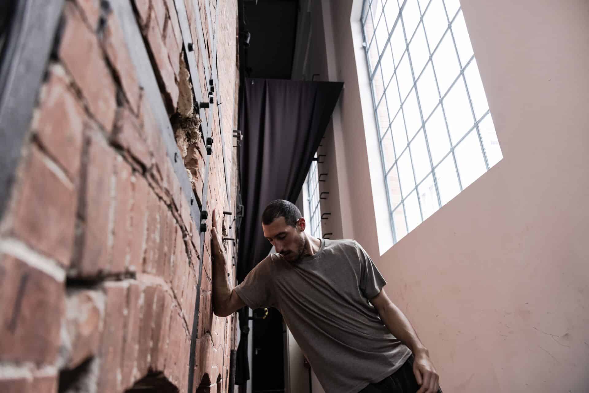 Postopoma nas vodijo skozi ozek prehod proti dvorani. Pojavi se nov kader, nova ovira, nov okvir. Če nam je v začetku kader omejevalo okno, skozi katerega smo kukali v prostor dogajanja, in je kasneje prisotnost drugih definirala naš položaj, nam zdaj pogled omejuje sama arhitektura prostora. Kasneje se vključi še kader objektiva, saj sledi vpeljava fotoaparata in v nadaljevanju še pogled skozi kamero. Omejitev pogleda se kot rdeča nit plete skozi celotno plesno instalacijo in pušča občinstvo v zavedanju, da nekaj ostaja skrito in nevidno pogledu. Se ples zgodi, tudi če ga ne vidimo? Ali je v tem primeru tudi resnično? Povabljeni smo torej po stopnicah navzdol v zaodrje in med garderobe pod odrom Stare mestne elektrarne.