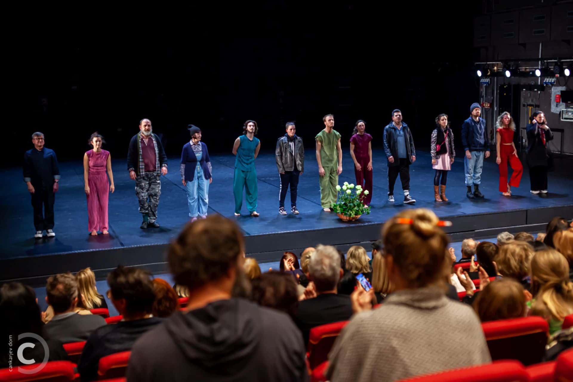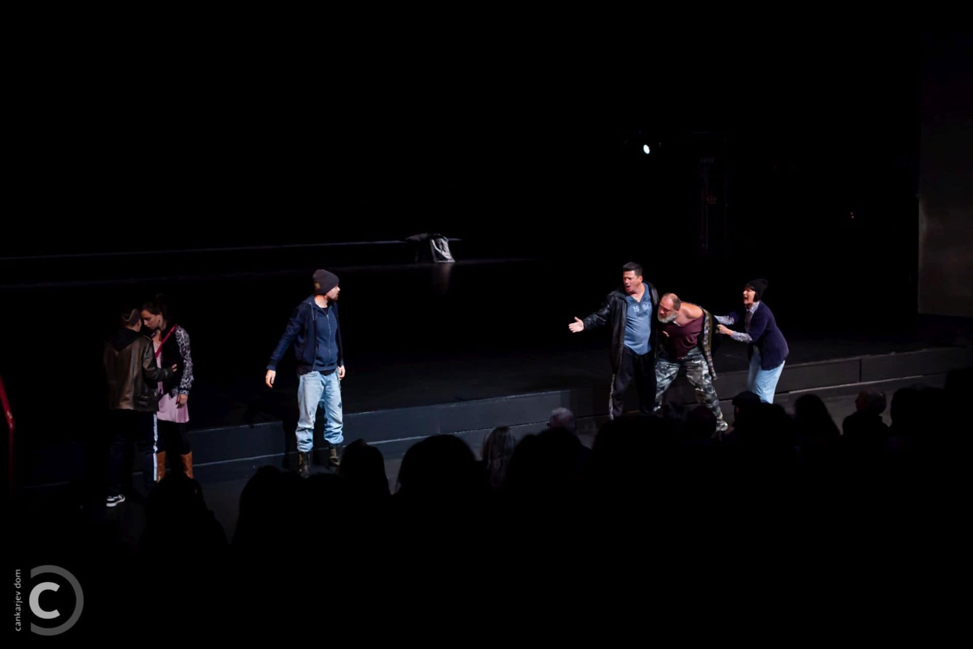 V vlogah brezdomcev so nastopili: Tina Resman, Veronika Valdés, Marinka Štern, Uroš Potočnik, Sebastjan Starič in Jure Žavbi. Na levi strani dvorane se vseh zgodb ni dalo jasno slišati, gotovo zavoljo slabe dikcije oz. pripovedovanja bolj prvim vrstam, kot širnem avditoriju. Potočnik je s svojo odlično odigrano pripovedjo in jasno dikcijo na skrajni desni bil gotovo slišen ter viden po celem avditoriju, tako kot Starič in Šternova, ki sta sedela bližje odrski sredini. In ker se v predstavi govori o konfliktu, sem razkorak med levo in desno stranjo odra štela kot tretji konflikt v tem času uprizoritve. Prvi je bil na začetku ob glasnem prepiru, drugi ob pretepu na odru in tretji v dvorani, ko leva stran ni imela enak sedežni privilegij kot desna, odražalo pa se je v medsebojnem šušljanju.