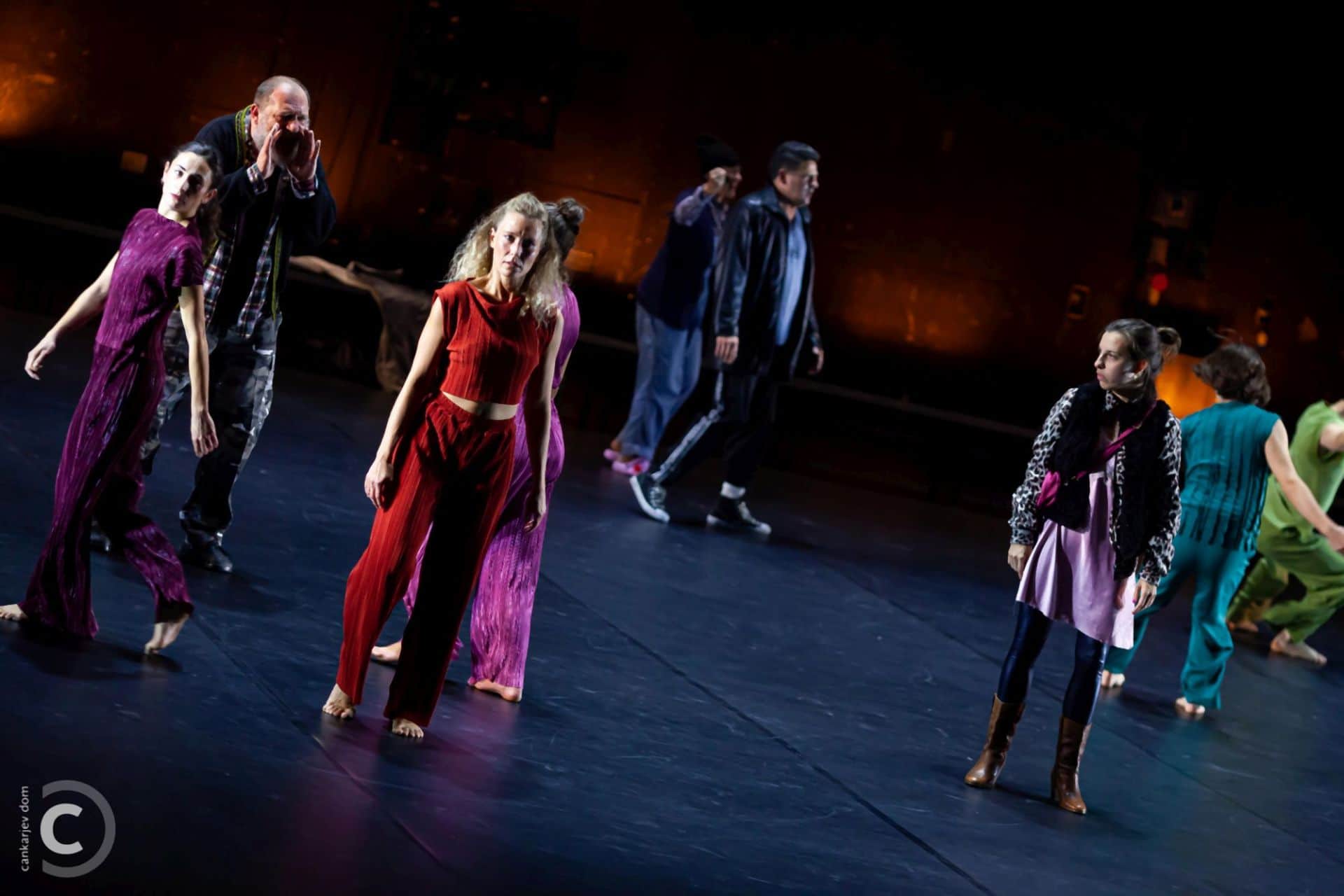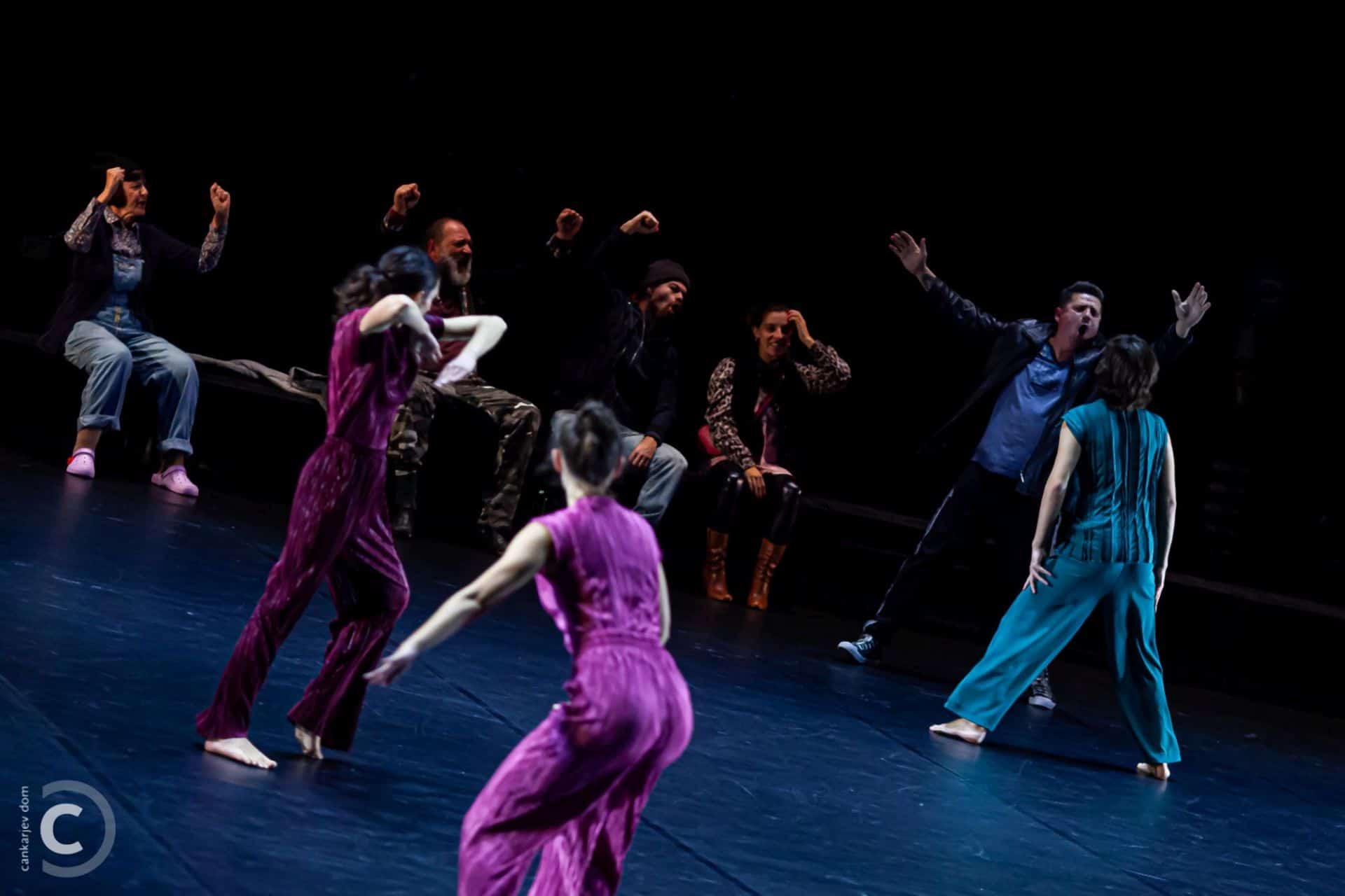 V nekem trenutku se Starič skušal približati plesnem kolesju, kot tudi Potočnik, ki je še nekaj ´bentil´, vendar se hitro premislil ter vrnil v dano ozadje. Po vmesnem napotku Matjaža Fariča, ki pride sredi predstave ob oder, tako plesalcem, kot igralcem, ki je sledil po vzoru leta 2021, ko jih je miril, se pri igralcih ni nič spremenilo, plesalci pa so nakazali več osebne plesne svobode. Tudi svetloba se je nenadno barvito vključila v sceno (oblikovanje svetlobe Matjaž Bajc), nato so se zavrteli zanimivi videoposnetki plesnih pohodov po mestu, žal prepozno.