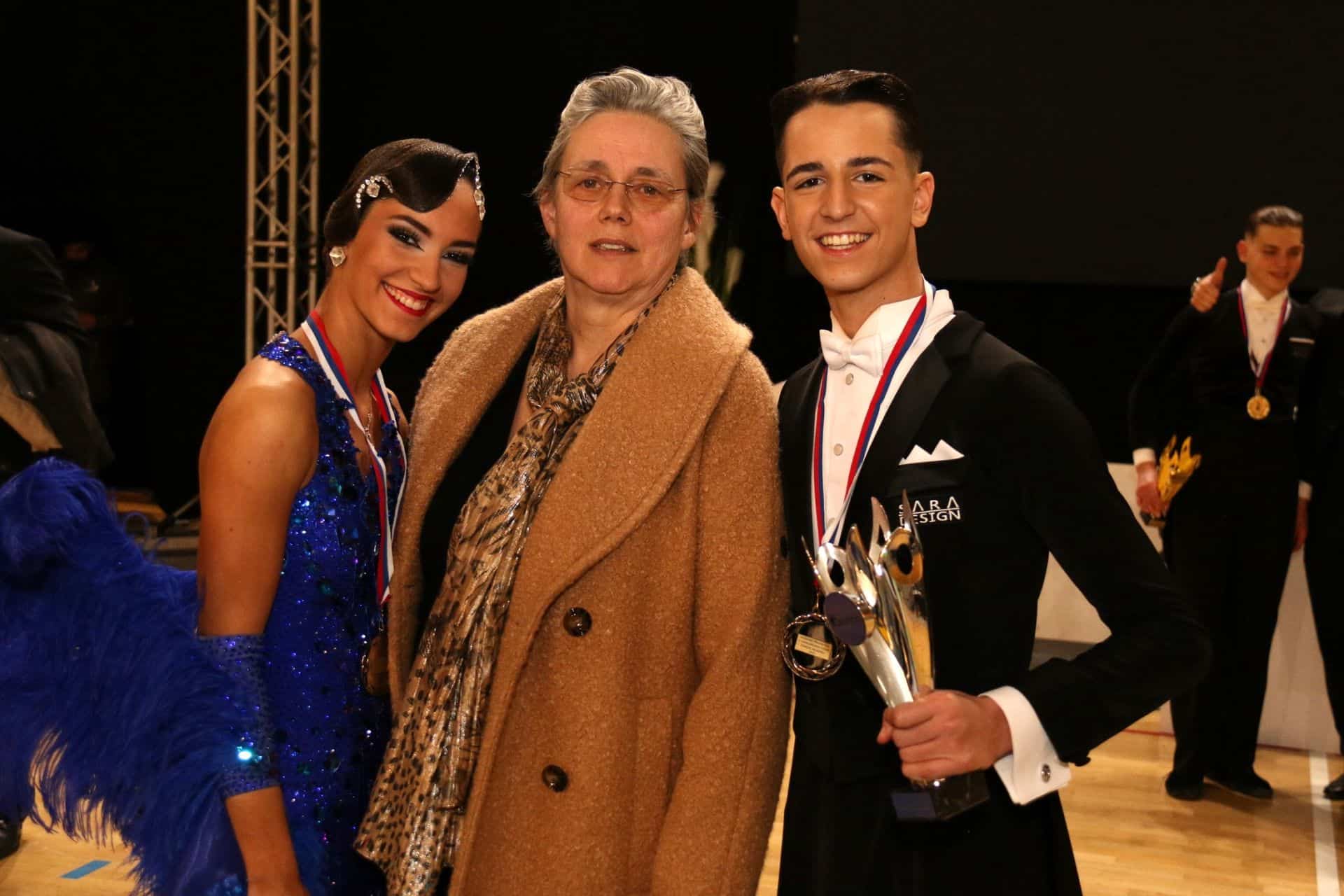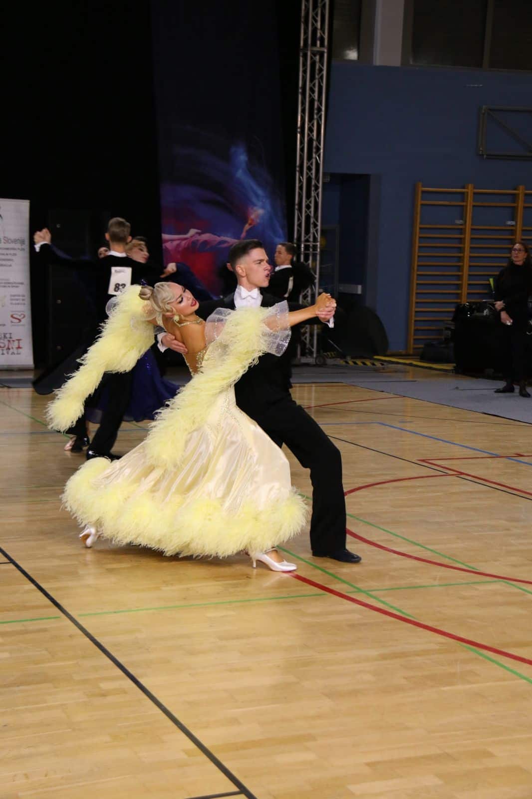 Zagotovo najbolj atraktivna kategorija je bila starejše mladinska. Že v polfinalu je bila prisotna močna energija, da prekrasnih oblek sploh ne omenjam. Prevladovala je črna barva, nekaj rdeče, zelene, rumena in modra. No, v finalu se je šest finalistk še bolj bleščalo. Iza Vidergar v srebrni si je priplesala tretje mesto s soplesalcem Danom Hudetom iz Salsera. Virozna Kaja Katona je v atraktivni močni modri obleki ruskega oblikovalca, ki si ga nisem zapomnila, z Jako Miheličem Raderjom (PK Feniks), ki ga je tudi pestila viroza, priplesala na drugo mesto. Aktualna državna prvaka v kombinaciji Nik Franci Visnovič se je z Zalo Hauptman, ki si je omislila nežno rumeno obleko v kreaciji Zdenke Arko, zavihtel še do naslova najboljšega para v standardu med starejšimi mladinci. Plešeta za Bolero in njuna ekipa trenerjev z Miho Vodičarjem na čelu je bila zelo zadovoljna.