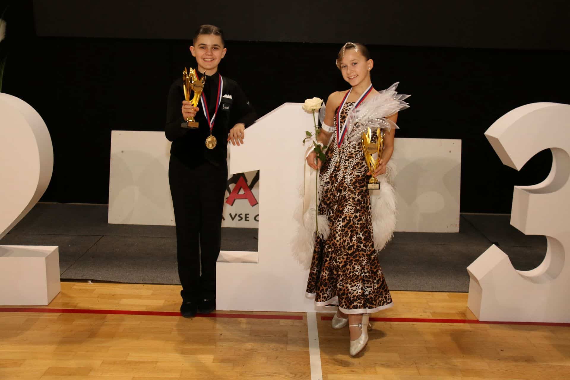 Štirje pionirski finalisti so nestrpno čakali na svojih deset minut in pet tekmovalnih plesov. Zmago sta obranila Samuel Pavlin in Uliana Galchun iz Diamanta. Uliana se je zelo ‘potegnila’ in počasi postaja razlika v velikosti zelo opazna. A nastop sta opravila z odliko in zmage sta se veselila širokih ust.
