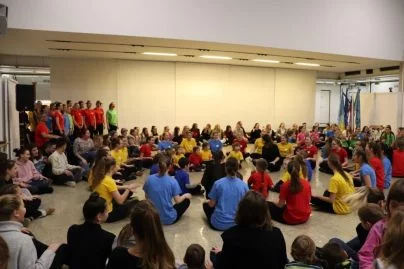 Otroci vrtca Ciciban so se ob koncu še posebej potrudili ter opogumili, saj v krogu zavejejo Biba raja (M. Voglar) v koreografski postavitvi njihovih vzgojiteljic Mojce Gabrovšek in Kaje Kern. In prav čisto na koncu steče še veselo rajanje v krogu vseh nastopajočih v slogu ‘flashmet’ na ljudsko in vedno razigrano Ringa, raja, ko se jim pridružijo še dijaki 2. razredov.