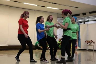 Bil je to iskriv, tudi dobro uigran plesni ter spevni nastop dijakinj 3. letnikov programa predšolske vzgoje srednje vzgojiteljske šole. Njihovi skupinski plesi so zaobjeli ves prostor, ko so se v ravnih črtah, vrstah in po diagonalah prelivali iz ene v drugo grupacijo, se krožno ovijali ter zaokrožili v gibalnih oblikah zaplesanih sosledij, zlitih z ritmi v gibkem senčenju pesmic, tudi povsem uglašeni z glasbeno kompozicijo izbranih pesnitev za otroke, ko je nastopilo 60 dijakinj in 40 otrok omenjenih dveh vrtcev.