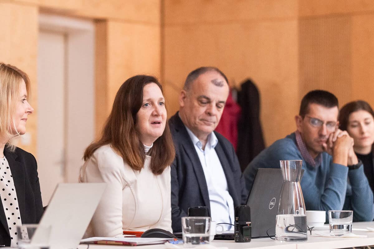 Helena Filipčič Gardina, strokovna sodelavka ZGŠ, Tonja Lapanja Brenčič, predsednica Zveze slovenskih glasbenih šol, Betka Bizjak Kotnik, predsednica Komisije TEMSIG, Matej Šarc, direktor Slovenske filharmonije in umetniški vodja Orkestra Slovenske filharmonije, David Veber, predstojnik Oddelka za kompozicijo in glasbeno teorijo na Akademiji za glasbo UL in Katja Bogovič, vodja programske pisarne Festivala Ljubljana. (foto: Polona Bartol)