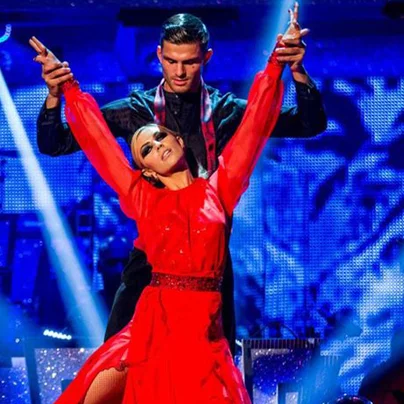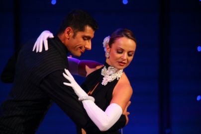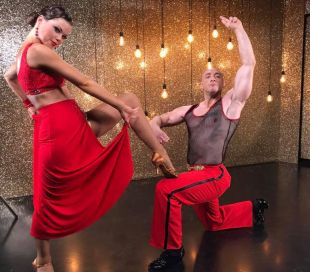 Zveza med Tino Jarc, danes inštruktorico gyrotonika, in Petra Polesa velja za največjo afero v zgodovini slovenske različice šova Zvezde plešejo. (Foto: TV SLO)