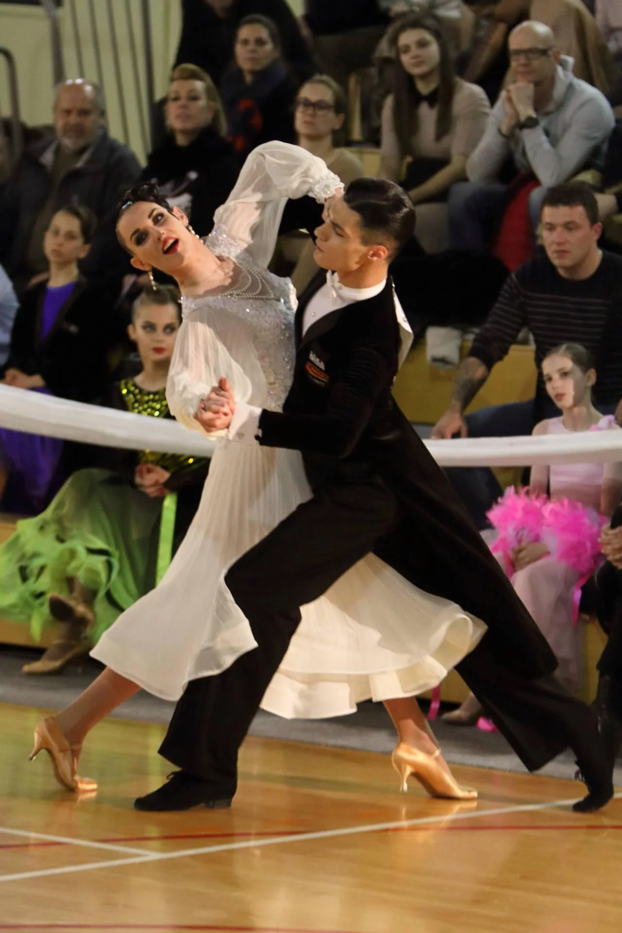 Zmagovalca, in to tretja po vrsti, pa sta postala Ana Mesec in Ilija Dobrev, ki sta premagala drugouvrščena Akima Pekunova in Mašo Kastelic. Ana je plesala, kot se za profesionalko spodobi, saj je ves teden pred državnim prvenstvom ležala doma z vročino, in kot pravi, ni pomislila na to, da se državnega prvenstva ne bi udeležila. Se je pa njen soplesalec Ilija prvič pokazal s svojo ljubeznijo, in sicer za zdaj nekdanjo plesalko Milano Chekanovo. Ko sem ga vprašala, koliko časa sta par, je sramežljivo odgovoril, da ne bi želel dati izjav na to temo in da strogo ločuje ples in zasebno življenje. Upam, da je temu res tako. Ana je plesala v beli obleki in bela je bila poleg roza in marelične ter rumene precej popularna barva na letošnjem državcu. Nekaj plesalk se je tudi tokrat odločilo za t. i. reciklažo in so preprosto odkupile obleke od plesnih kolegic, kar je več kot racionalno in ekološko. Nekatere mame pa so mi zaupale, da obleke naročijo preko spleta, ker je to preprosteje in ceneje. Zelo elegantna je bila recimo obleka Anastasie Golcove − črna z modrimi prosojnimi rokavi.
