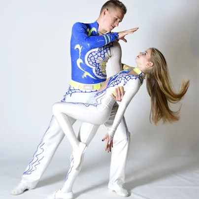 Evelin: Za najine kostume poskrbi Romana Hren (For You), pred izdelavo kostuma se skupaj pogovorimo, oba z Matejem poveva svoje želje, kostuma pri paru se morata ujemati, vendar morata biti narejena tako, da sta vsakemu posebej “pisana na kožo”. Biti mora poseben, drugačen, izviren, da takoj ko stopiš na oder, sodnikom “padeš” v oči. Seveda pa se moreš v njem dobro počutiti in te ne sme ovirati pri plesu in akrobacijah. Kostum se mora ujemati tudi s koreografijo in komadom, na katerega je program narejen.