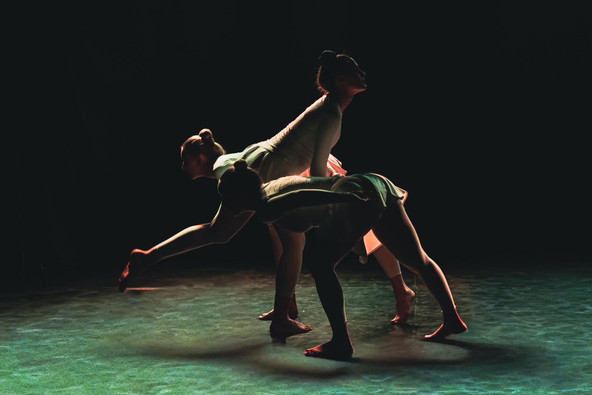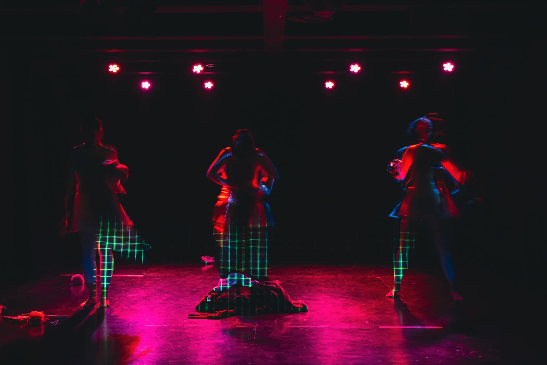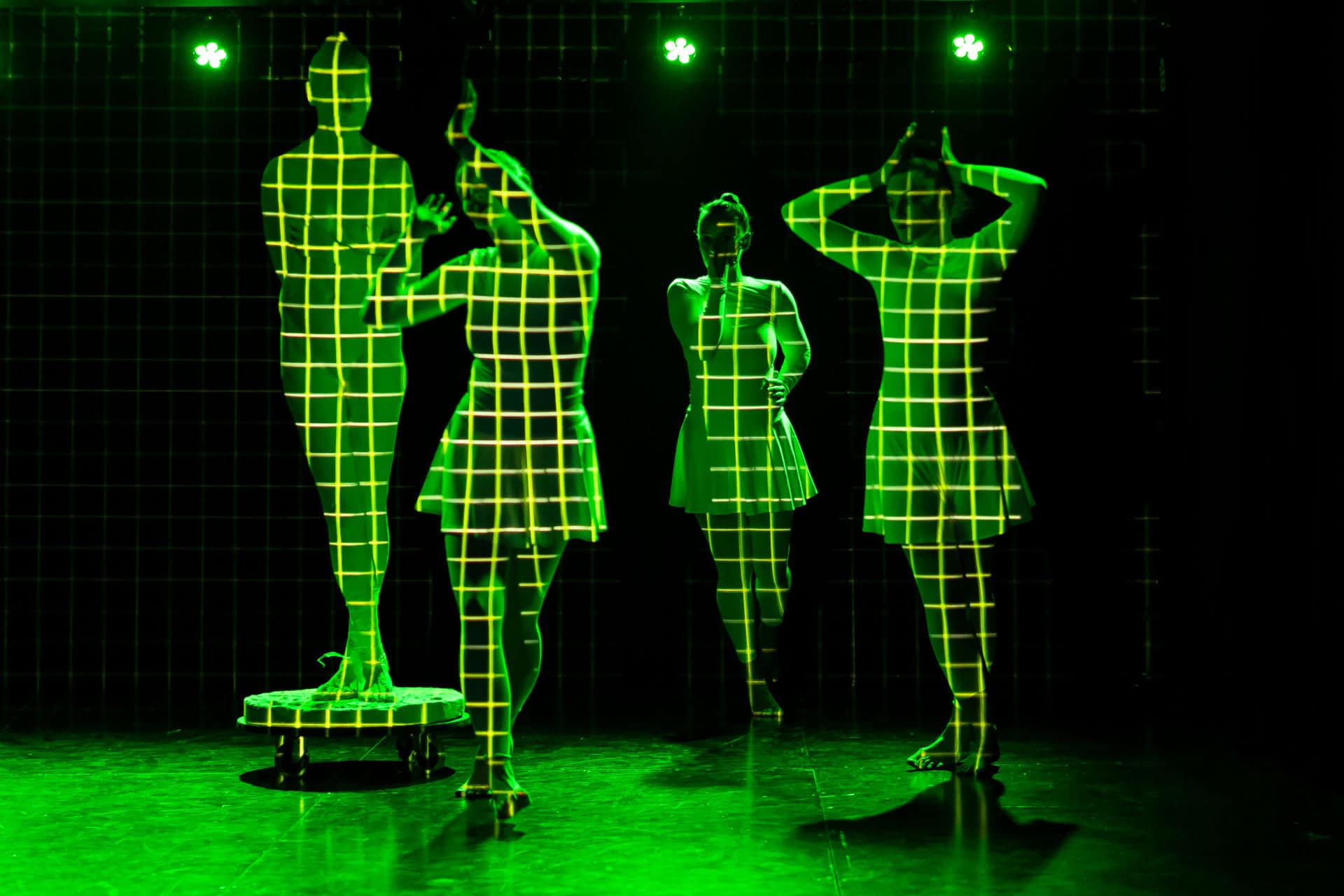 Projekt pa se vsebinsko navezuje na dediščino slovenskega sodobnega in izraznega plesa, predvsem na koreografijo Upor (1953) Žive Kraigher, ki je upor razumela kot telesni odziv na družbeni pritisk. Ta ideja upora se v naši predstavi prevaja v sodobni kontekst, v digitalni prostor algoritmov, filtrov in nenehnega samoopazovanja. Green Light District tako ni le kritika digitalne kulture, temveč poskus ponovne vzpostavitve telesne prisotnosti, avtonomije in človečnosti. Predstava gledalca postavi v vlogo udeleženca sistema, ki ga hkrati razgalja, in mu nastavi ogledalo, pri čemer vedno znova postavlja odprto vprašanje, koliko smo se pripravljeni v njem prepoznati.