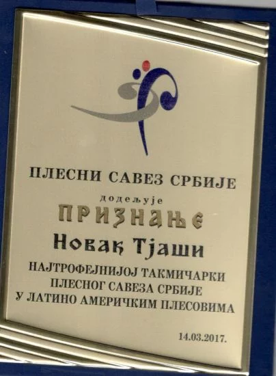 Težko je pozabiti to obdobje, v katero sem vstopila kot ‘bambi’ in izstopila kot plesalka. Pogosto sem se spraševala, če sem iz pravega testa, in naučila sem se, da zlato pravilo, da se s trudom vse doseže, res drži. Vsaka izkušnja ti razširi obzorje, jaz sem se naučila novega jezika in spoznala novo kulturo. Vse skupaj ena pozitivna izkušnja. Nedavno me je Srbska plesna zveza še enkrat prijetno presenetila. Na slovesnem praznovanju ob dvajsetem jubileju obstoja zveze sem prejela plaketo za najuspešnejšo tekmovalko Srbije v latinskoameriških plesih.