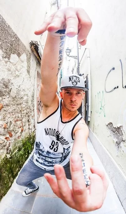 Tattoji so pa ene vrste moji opomniki in hkrati spomini! Cela leva stran telesa predstavlja bojevnika, desna stran plesalca, kot jin in jang, ravnovesje v meni. Na levi podlakti imam napis RESPECT, ena najpomembnejših besed pri meni, ker si ne predstavljam pogovora, dela, zveze, tudi "zafrkancije" brez tega! In napis WARRIOR na levi rami, to je začetek moje zgodbe, ko sem se začel zavedati moči, ki jo imam v sebi, in da se je treba boriti za stvari, v katere verjamem, s tem tattujem se bo potem še zgodba nadaljevala, samo moram si še vzeti čas, da zrišem skico :). Na desni strani na podlakti imam pa napis JUSTICE, nekako me je ta beseda pripeljala do moje plesne poti, je cela zgodba za tem, pa bom to zadržal za sebe ;). Nadlaket je posvečena glasbi, nekoč smo se pogovarjal, kaj bi izbral, če bi moral izbirati med med gluhim in slepim, jaz sem izbral, da bi raje bil slep, ker glasba je del mene in si ne predstavljam, da ne bi slišal zvokov okoli sebe. Velikokrat zaprem oči, ko poslušam glasbo, in vidim tisto, kar z očmi ne. Potem imam pa na rami napis DANCER, ki govori o meni, o drugi plati mojega življenja, in je tudi nedokončan, tako da v roku enega leta nadgradim svoje tatuje.